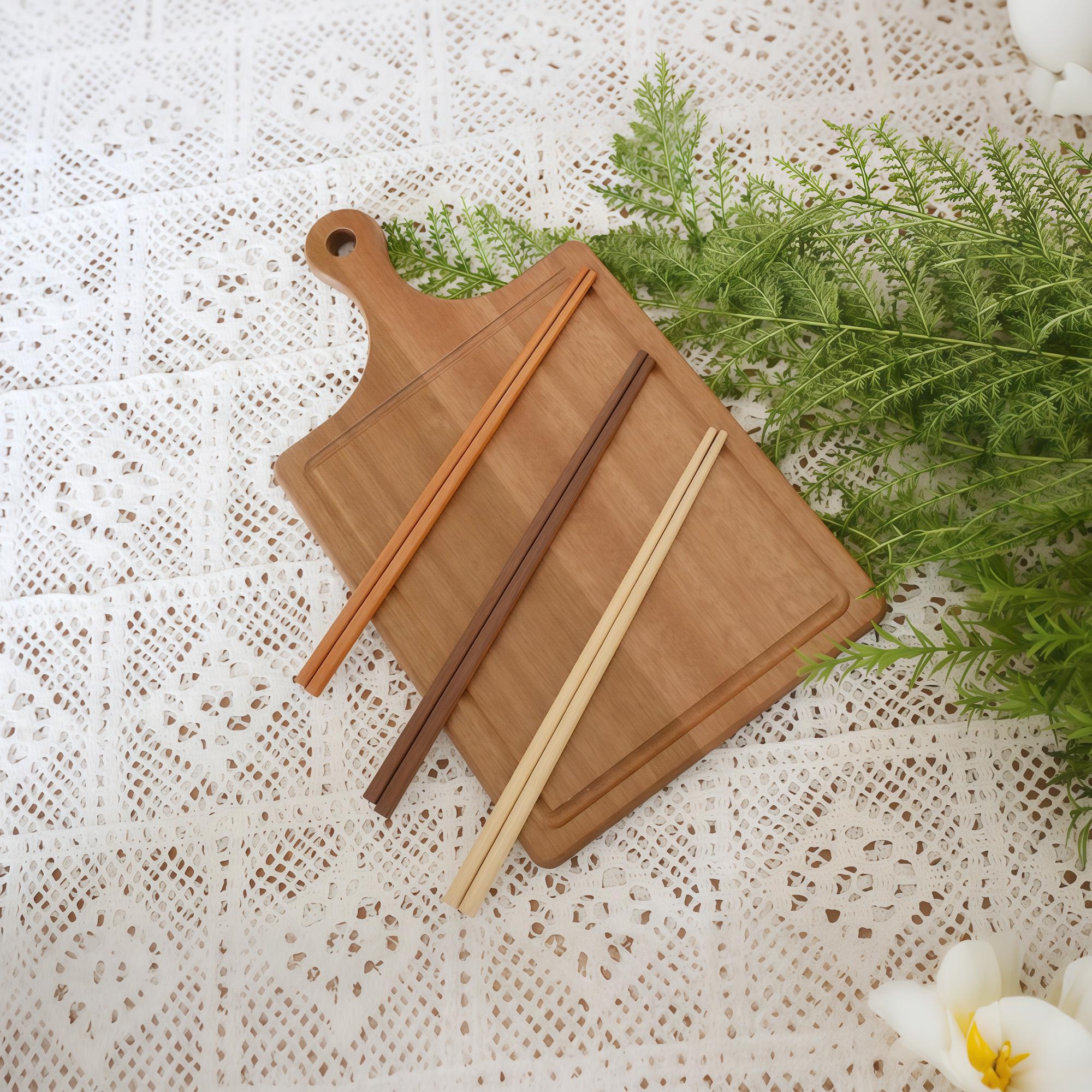 Why Choose Our Wooden Chopsticks? ✓ Eco-Conscious Dining: Reusable alternative to disposable chopsticks - reduces waste ✓ Comfortable Grip: Smooth, tapered design (25cm/9.85") for easy handling ✓ Food-Safe Finish: Natural oil treatment protects wood without chemicals ✓ Versatile Use: Ideal for sushi, noodles, Asian cuisine, and everyday meals ✓ Gift-Ready: Beautifully packaged as wooden gifts for weddings, birthdays, or gifts for mom Key Details ◖ Material: Premium natural wood ◖ Length: 25cm / 9.85 inches ◖ Colors: Natural Wood, Rich Brown ◖ Sets: 2, 4, 6, or 8 pairs ◖ Care: Hand wash only; dry immediately Perfect For Use Case Ideal Set Size Personal Dining Set of 2 Couples/Families Set of 4 Dinner Parties Set of 6 Restaurant/Event Set of 8 Authentic Craftsmanship Made using traditional techniques Precision-balanced for comfortable use Lightweight yet durable construction Smooth, splinter-free finish Slight natural variations honor handmade character Eco-Friendly Advantage ♻️ 100% biodegradable materials 🌳 Sustainable sourced wood 📦 Plastic-free, recyclable packaging ✨ Reduces single-use waste Ideal Gift Presentation "More than chopsticks - they're heirloom dining essentials. Perfect as: Gift for her or gift for him who loves Asian cuisine Gift for mom on Mother's Day Wooden gift for housewarmings or anniversaries Cultural appreciation present.