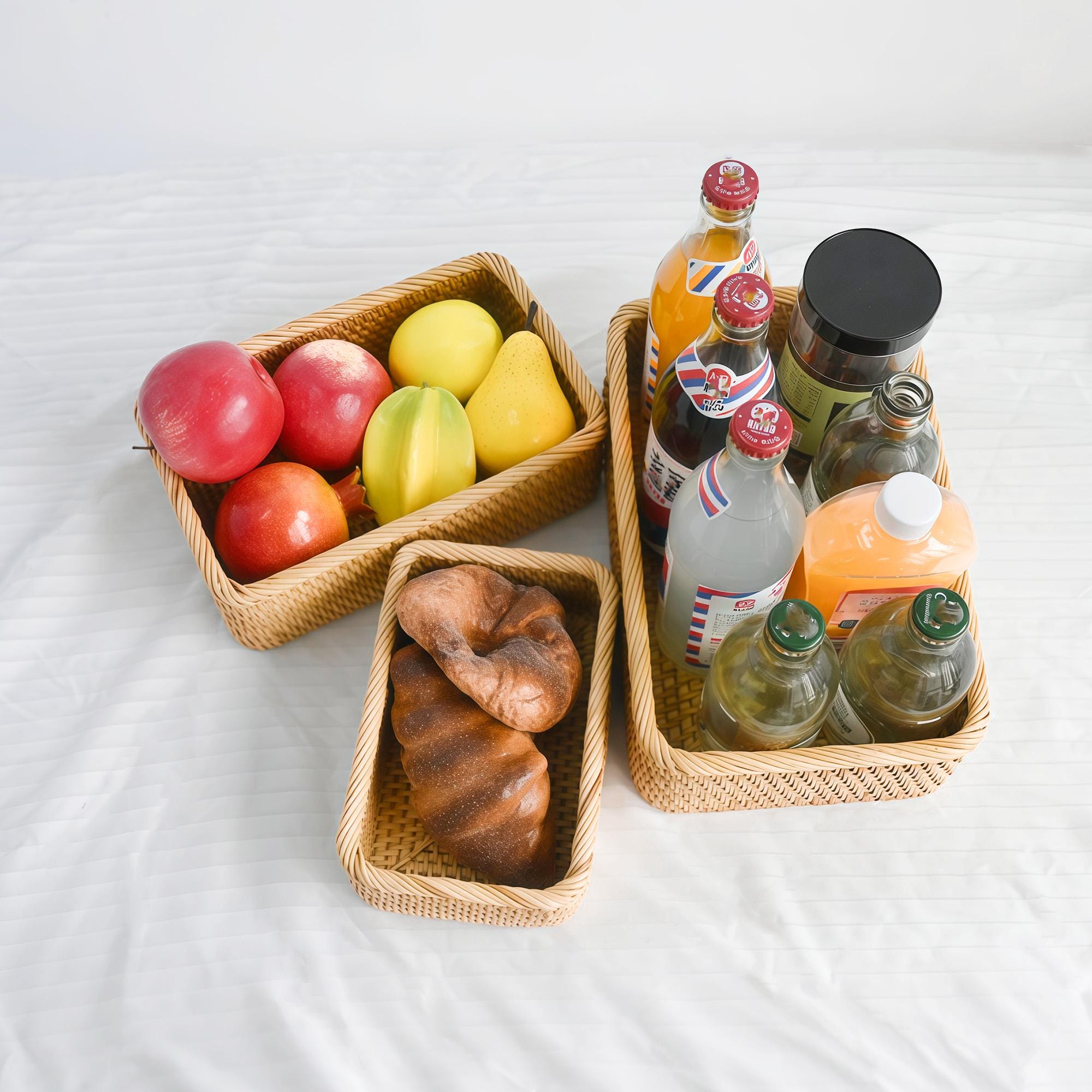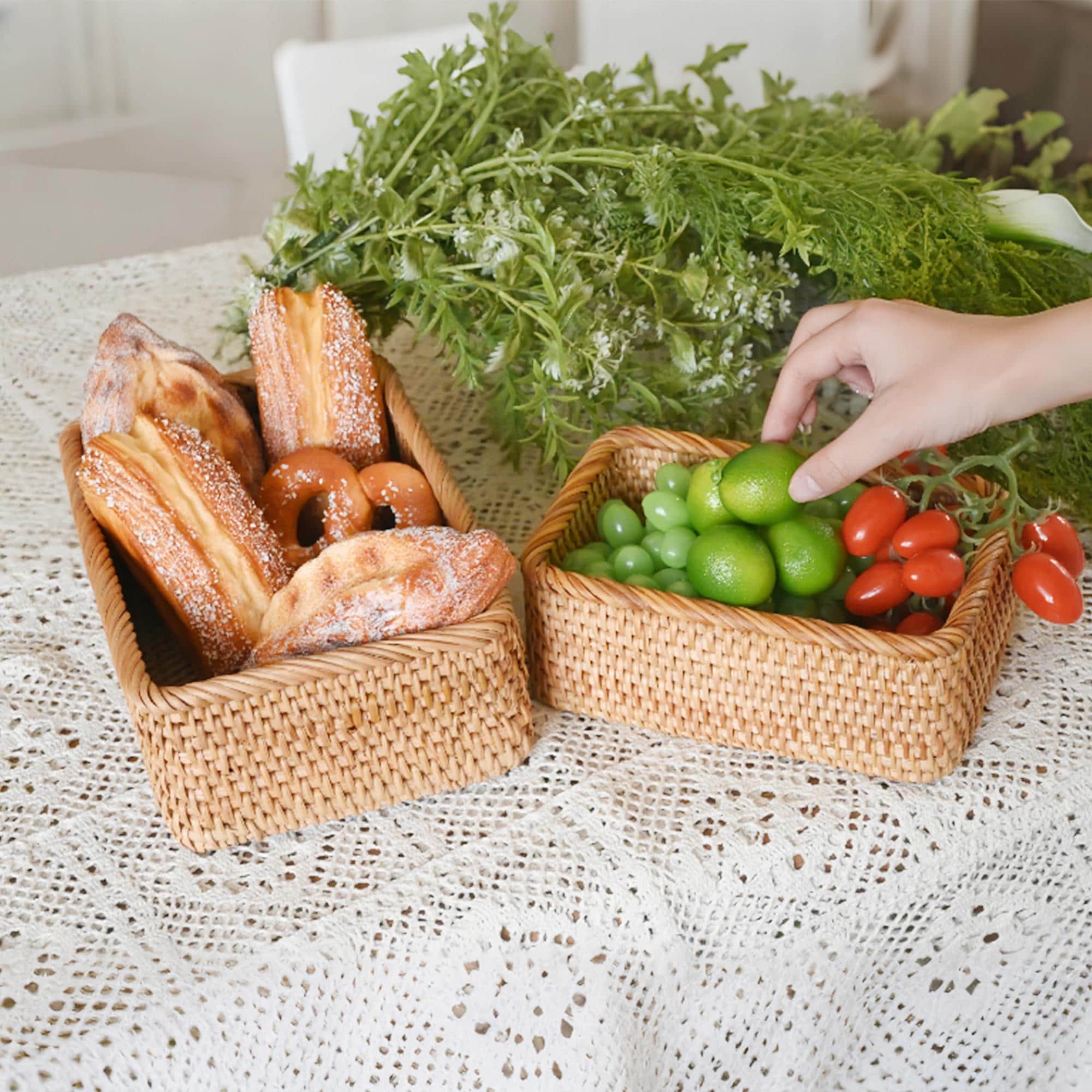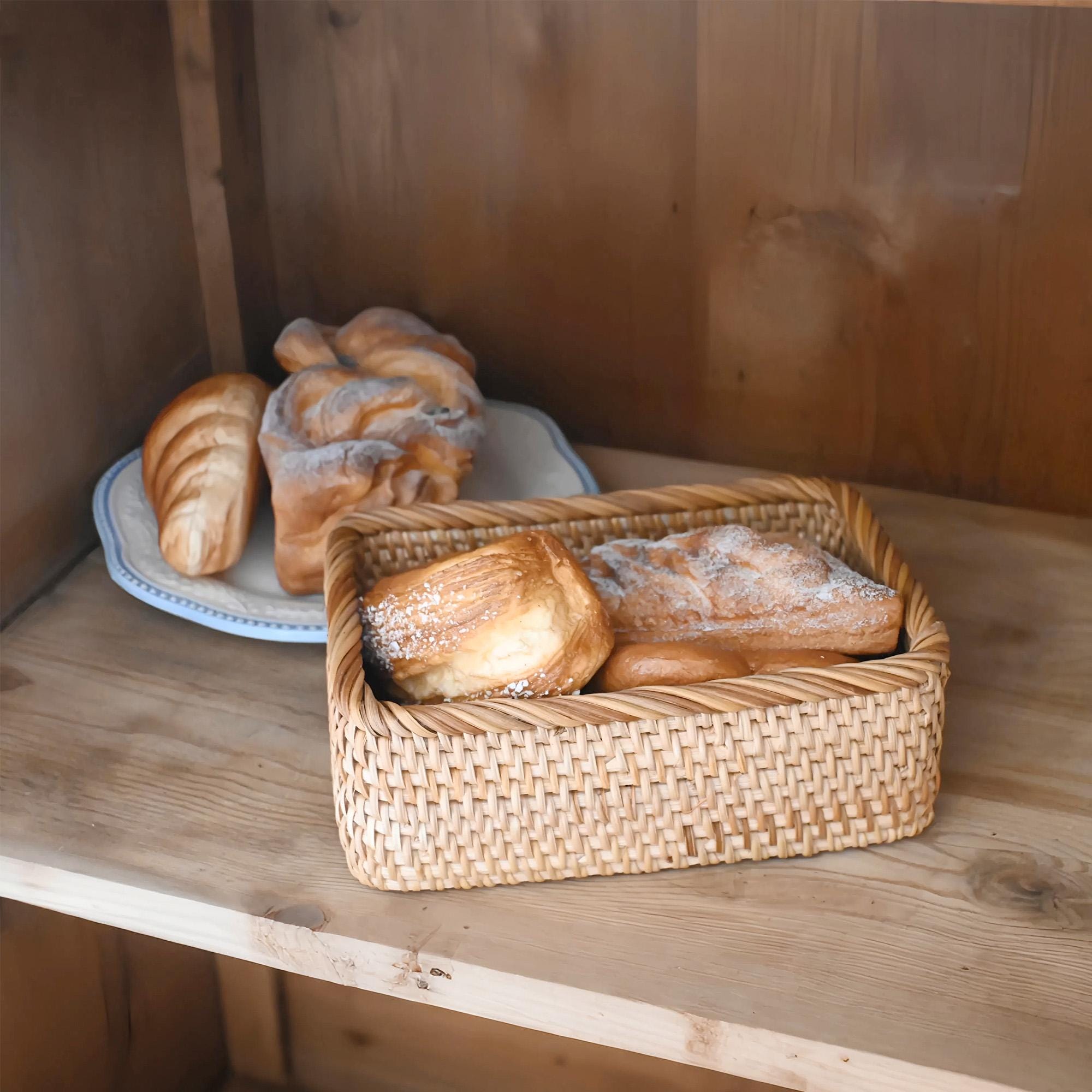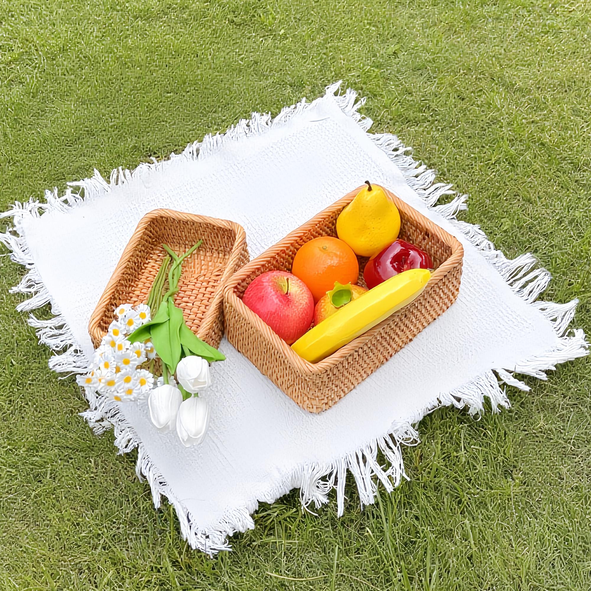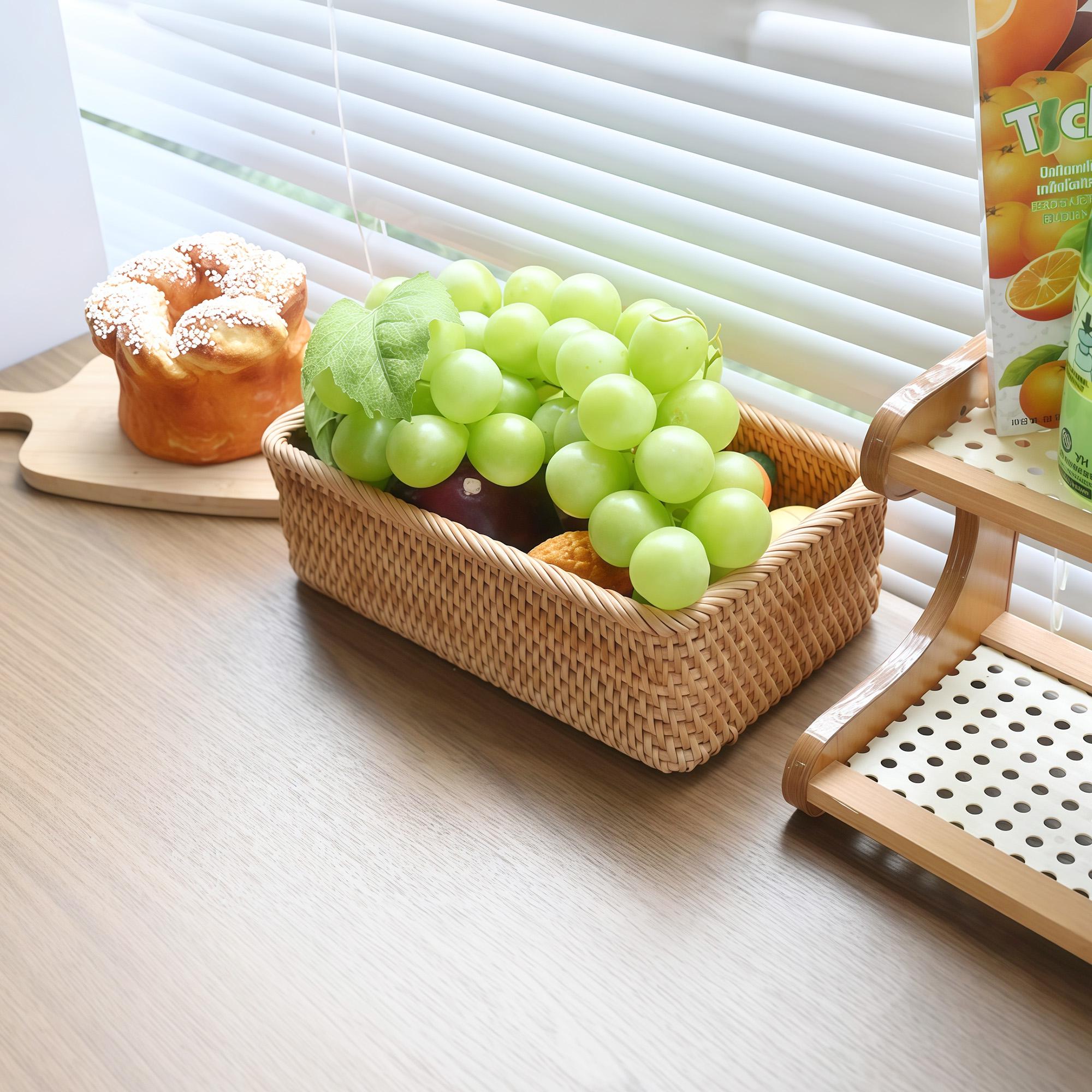 With Betoom' s Artisan rustic home décor woven baskets elevate Your Christmas celebrations and Space which are crafted with 100% natural rattan, our rectangular fruit basket blend rustic elegance with unmatched durability. Perfect for decluttering your living room, bathroom, kitchen, or garden, these versatile scalloped rattan basket hold everything from fruits and snacks to makeup, towels, and picnic essentials. An eco-friendly, handmade treasure that makes a heartfelt gift for Easter, Mother’s Day, housewarmings, or anniversaries!
