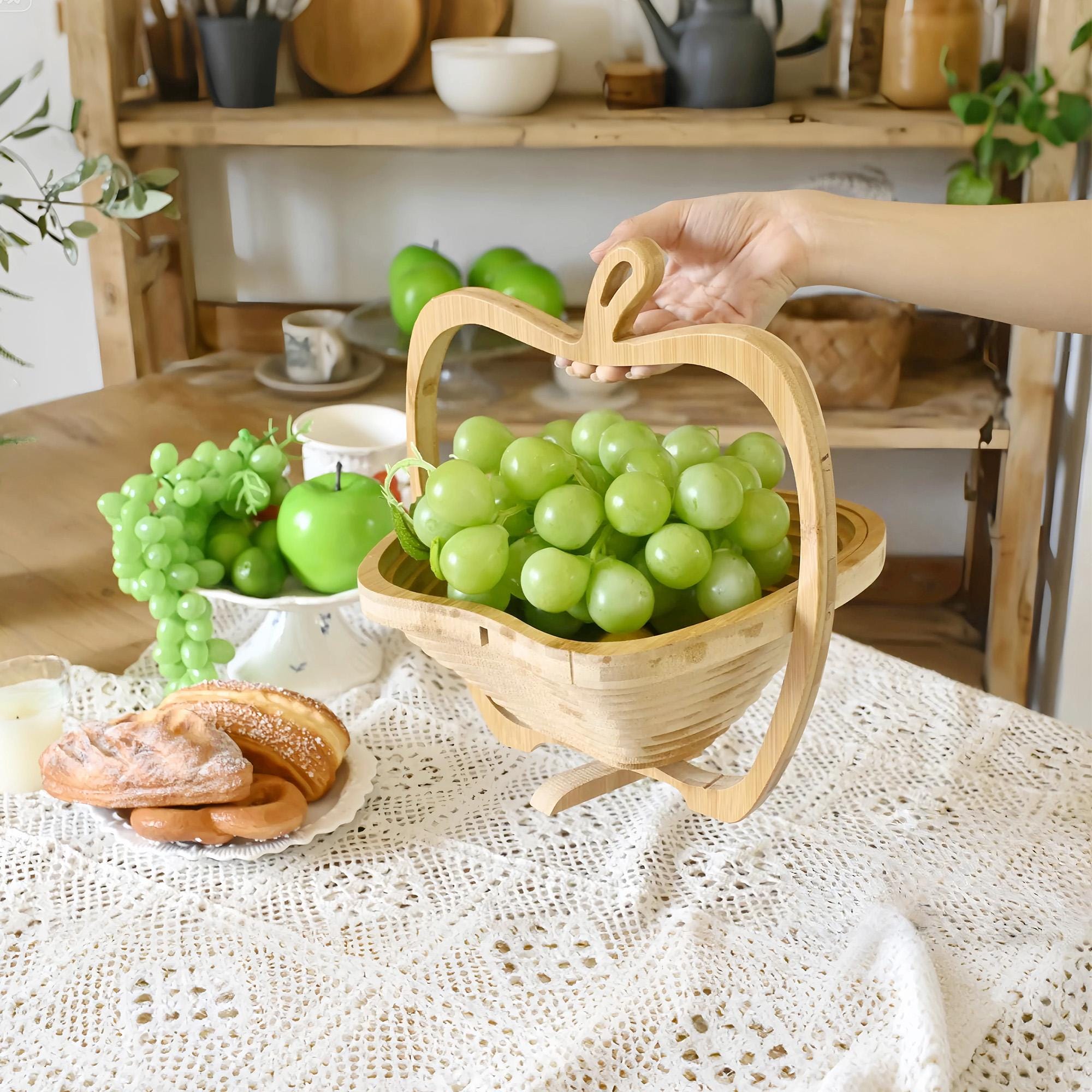 Charming Dual-Function Apple Fruit Basket Décor for Your Kitchen! Christmas Gift Our Betoomhandmade’s artisanal apple-shaped fruit bowl a collapsible showstopper that doubles as a fruit bowl AND heat-resistant trivet! Hand-carved from sustainable wood, this vintage-inspired piece combines farmhouse charm with modern functionality. Display fruits stylishly, protect tables from hot pans, or fold it flat for space-saving storage. KEY FEATURES 2-in-1 Magic: Seamlessly transitions from fruit basket to tabletop trivet Space-Saving Design: Collapses flat (2.5cm thick) for drawer/cabinet storage Eco-Crafted: Solid wood construction Unused & Pristine: Unlike "vintage" finds, yours arrives flawless! SIZE SPECS Open: 23.5cm (W) × 31cm (H) × 24cm (D) (9.25" × 12.2" × 9.45") Collapsed: 23.5cm × 24cm × 2.5cm which fits in thin drawers! 🍏 PERFECT FOR: • Countertop Display: Showcase fruits, onions, or decorative balls vintage ornaments • Hot Dish Protection: Trivet for pots/casseroles (max heat 200°C/390°F) • Farmhouse & Cottage core Kitchens: Rustic focal point hanging fruit basket • Gift-Giving: Housewarming, wedding, or Christmas for foodie friends & kitchen organizer 🌿 CARE INSTRUCTIONS Wipe with slightly damp cloth; dry immediately Avoid soaking or dishwasher 🎁 WHY CHOOSE BETOOMHANDMADE? • Larger Size: Holds 30% more than standard baskets • New & Pristine: No vintage wear/tear risks • Sustainably Crafted: Made with replanted timber long fruit basket • Guaranteed: 1-year wood integrity warranty