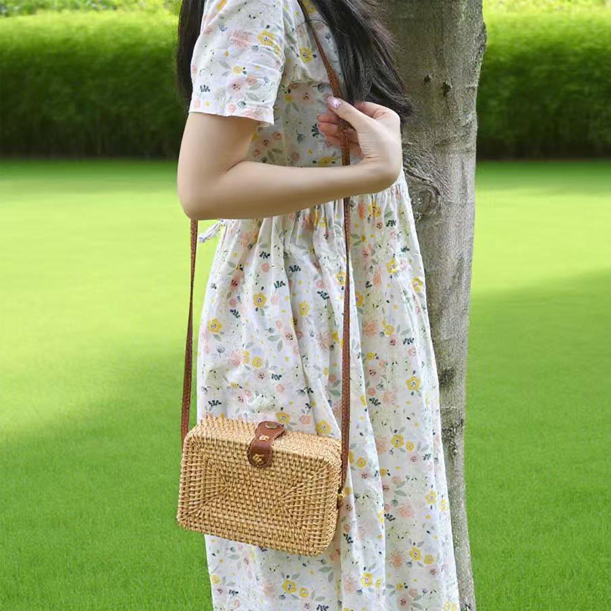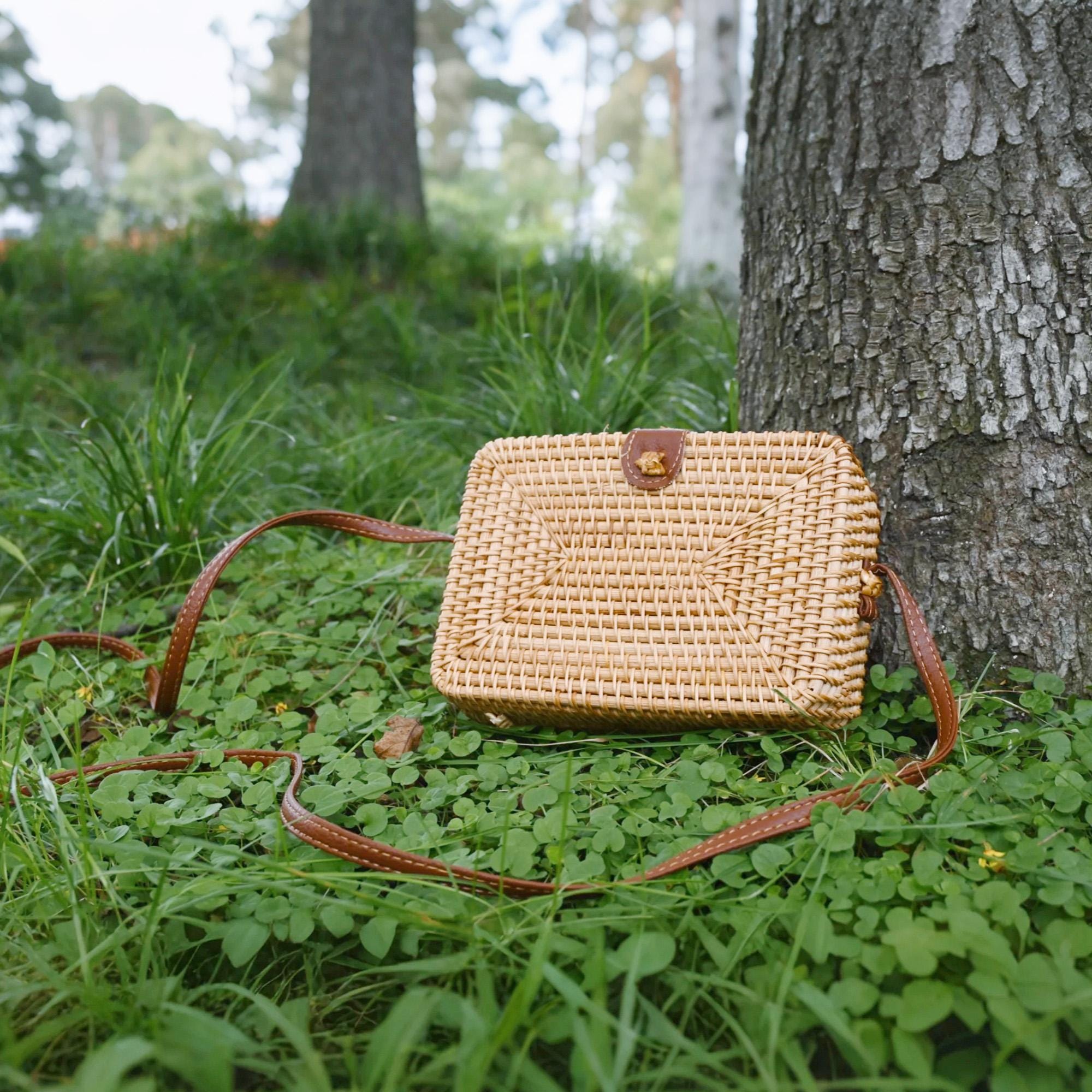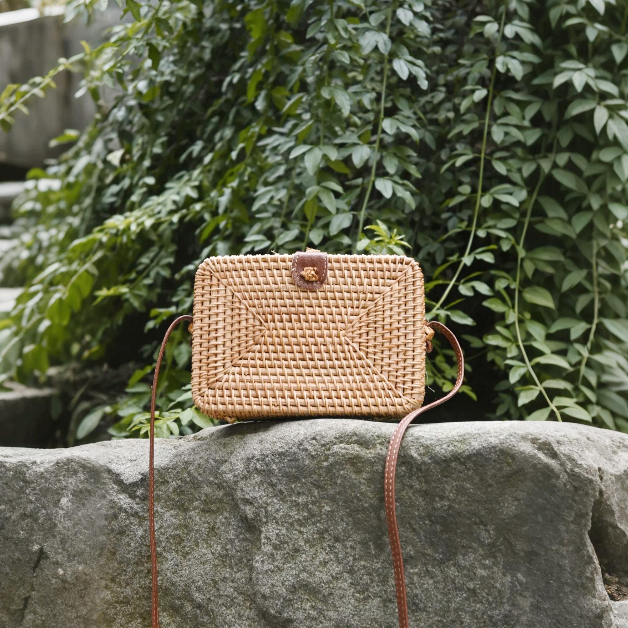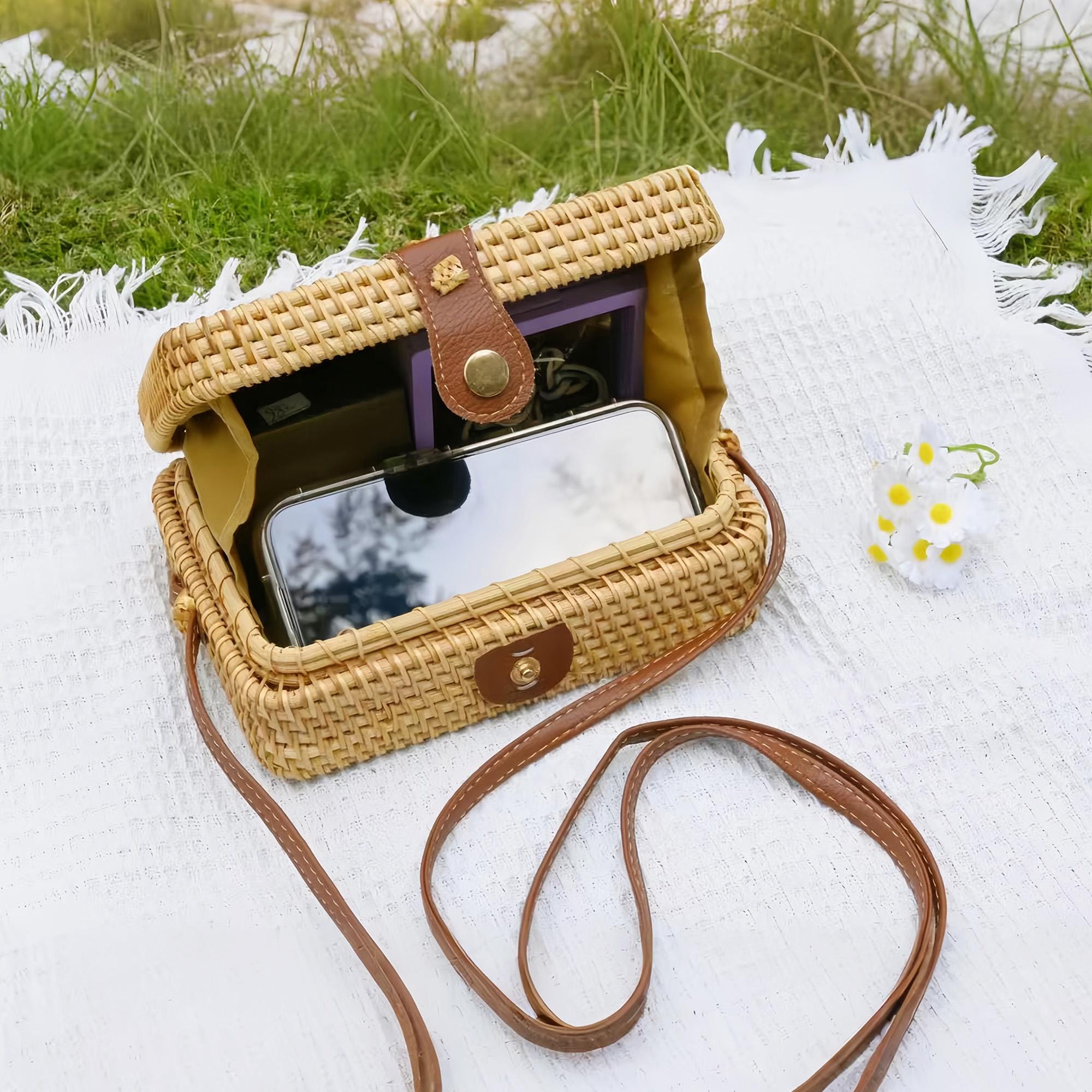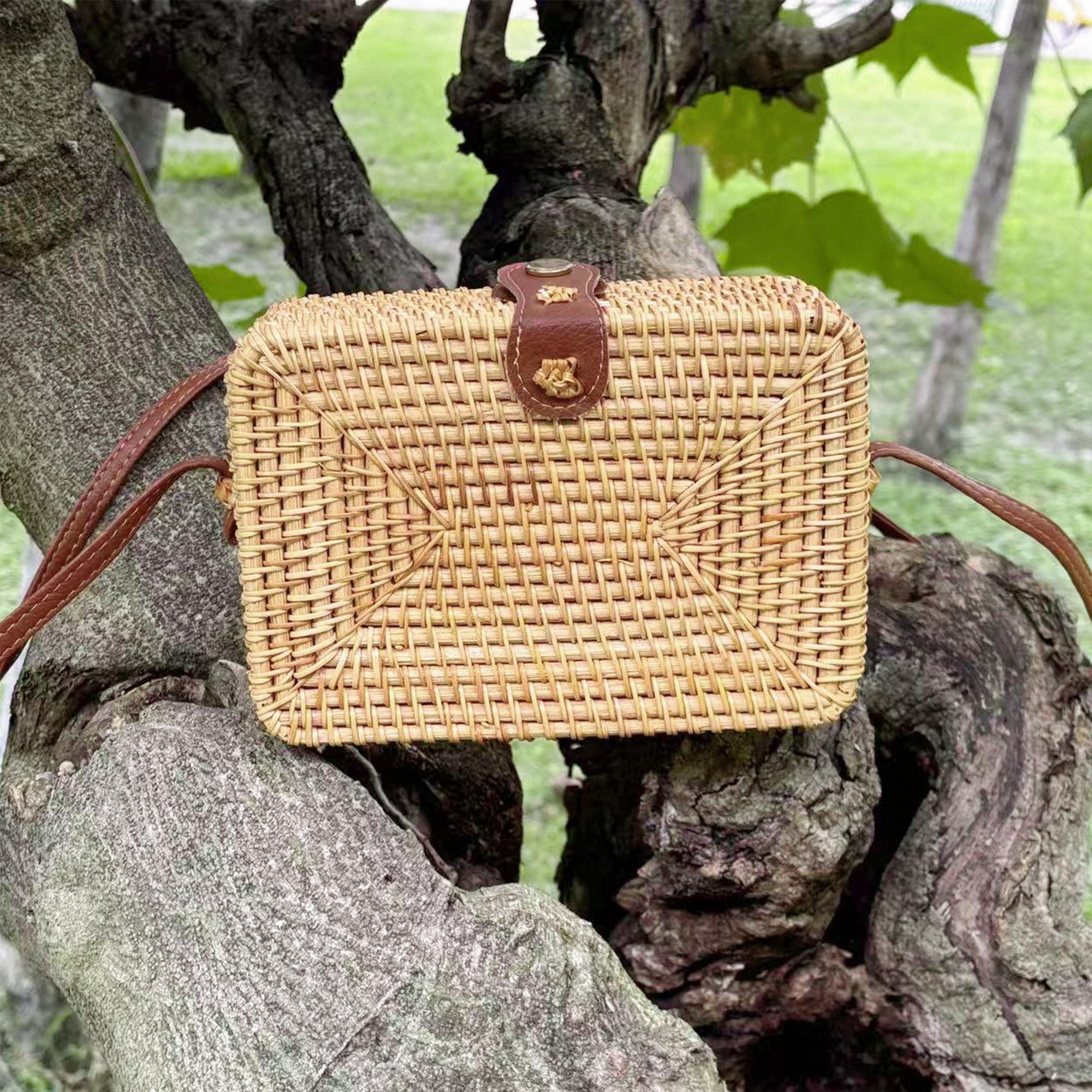 Structured Rectangular Wicker Crossbody Bag – Modern Boho Functionality Meet the structured sibling to the handbag: our Rectangular Wicker Bag. This design offers a modern boho purse look with defined lines and a spacious interior, making it both stylish and practical. Expertly handwoven from natural rattan, this sling bag features a sleek rectangular shape that easily holds your daily essentials while adding a touch of architectural interest to your outfit. PRACTICAL ELEGANCE Structured Design: The rectangular shape provides a modern twist on the classic handmade bag and offers easy organization. Spacious Interior: Deceptively roomy, designed to fit your phone, wallet, keys, and a small cosmetic pouch with ease. Durable Construction: Handwoven with precision for a sturdy, long-lasting frame that holds its shape. Versatile Strap: The adjustable genuine leather strap allows for crossbody or shoulder wear. Artisan Made: Crafted with the same commitment to sustainable materials and traditional techniques. THE PERFECT BAG FOR: Everyday use where a more structured look is preferred Those who appreciate a modern, geometric aesthetic Carrying a few more essentials without sacrificing style Pairing with both casual and more polished outfits PRODUCT DETAILS Size: 7.48*5.12*2.76in Material: Natural Rattan, Ata Grass, Genuine Leather, Cotton Lining Shape: Rectangular Closure: Snap Button with Leather Loop Strap: Adjustable Leather Strap (Crossbody/Shoulder Length) Interior: Fully Lined shoulder bag Style: Modern Boho, Structured, Geometric