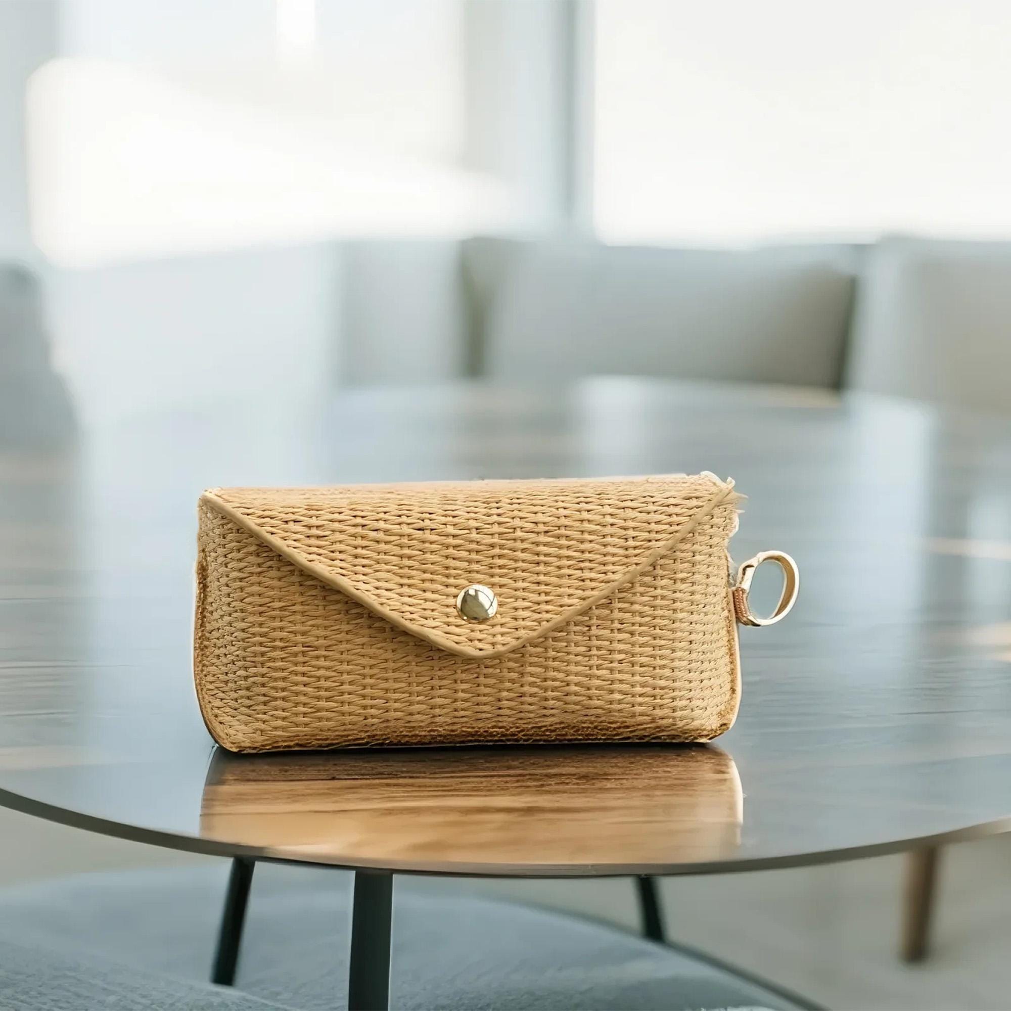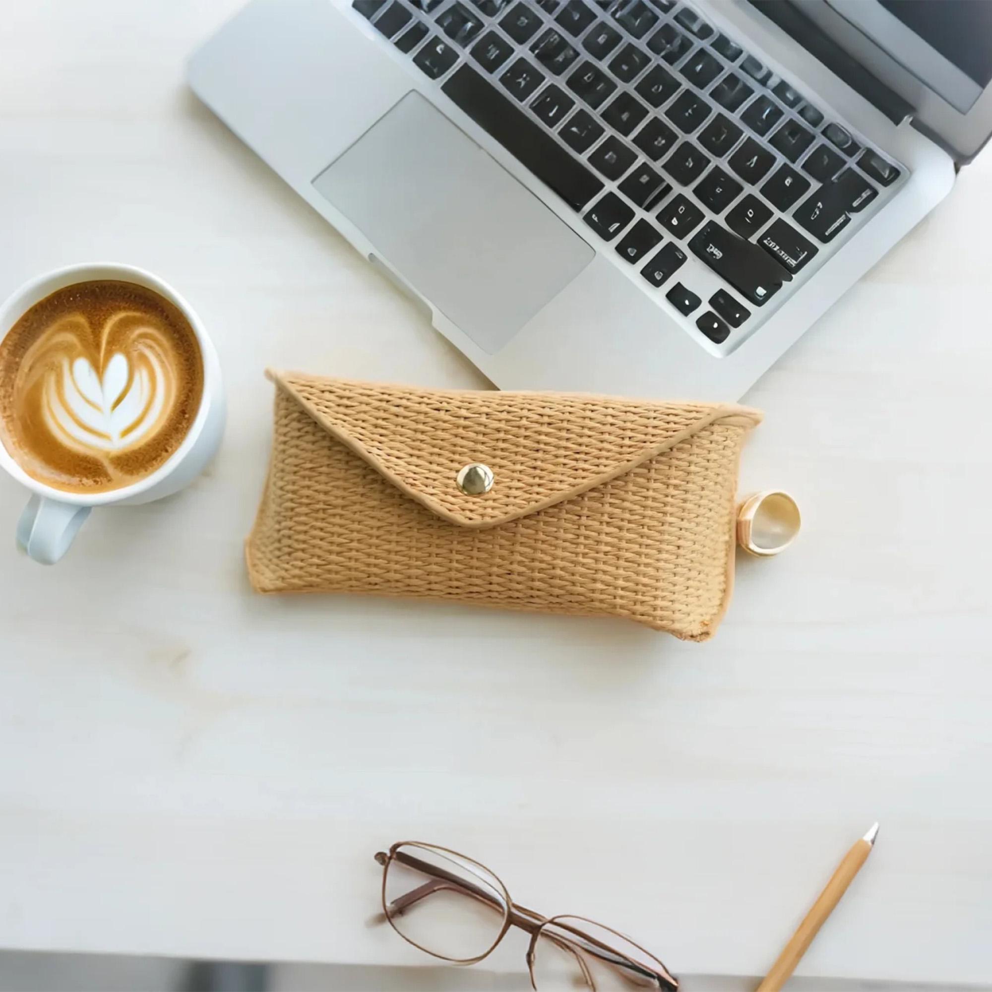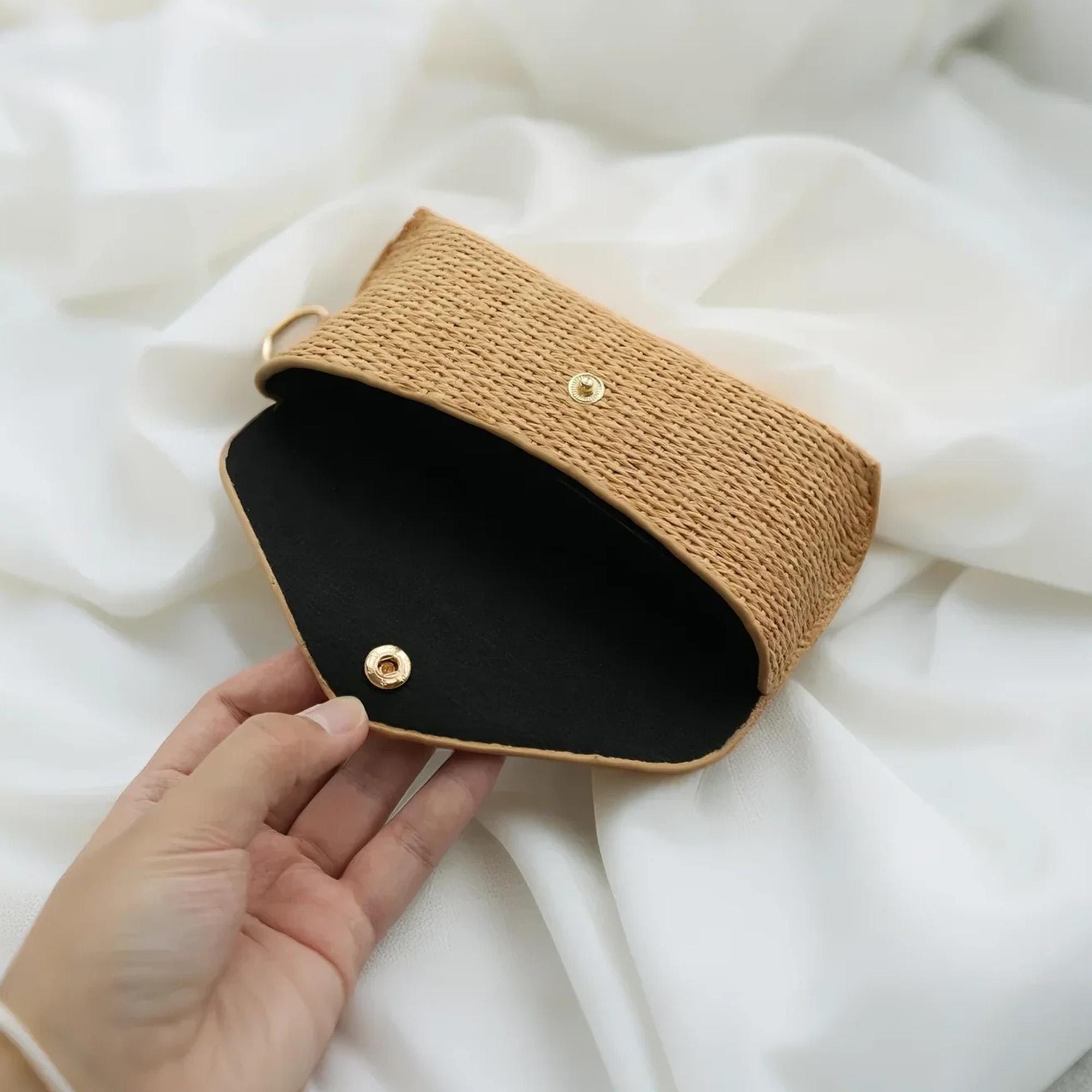 PRODUCT HIGHLIGHTS: 🧺 Natural Boho Charm: Each pouch is meticulously handwoven, featuring a beautiful textured straw finish in a warm, versatile Brown shade. It’s a simple yet stylish accessory. 🔄 Practical & Foldable: The clever fold-over design with a secure button clasp ensures your glasses are protected. It’s easy to slip into your handbag, beach tote, or car console without taking up space. ☀️ Your Go-To Protector: Ideal for sunny beach days, travel, commuting, or simply keeping your glasses safe at the bottom of your bag. A must-have summer essential! 🎁 The Perfect Gift: Looking for a thoughtful, useful gift? This beautifully presented case is an excellent choice for friends and family who appreciate unique, handmade accessories.