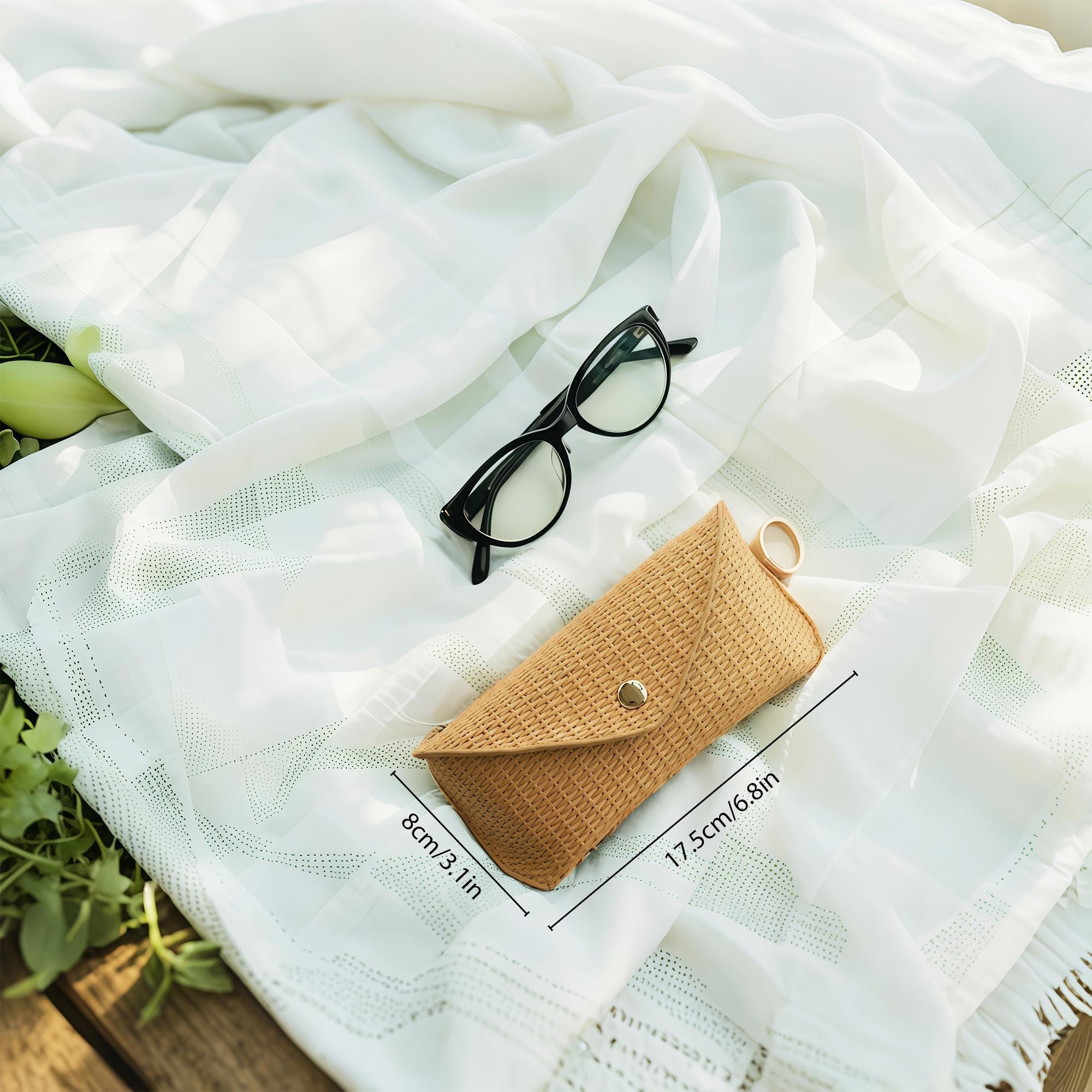 THE DETAILS: Material: High-Quality Fabric (Straw-textured) Color: Rich Brown Size: 17.5 cm (Length) x 8 cm (Height) – Fits most standard sunglasses and reading glasses. What You Get: 1x Handwoven Sunglasses Case in Brown. WHY CHOOSE US? We are passionate about creating beautiful, functional accessories for your everyday life. Every item is chosen with care to ensure it meets our standards for quality and style. SHIPPING & GUARANTEE 🚚 Fast Dispatch: We process orders quickly to get your item to you as soon as possible. 💚 Happiness Guaranteed: Your satisfaction is our priority. If you have any issues, please message us! Thank you for visiting our shop! We hope you love this case as much as we do.