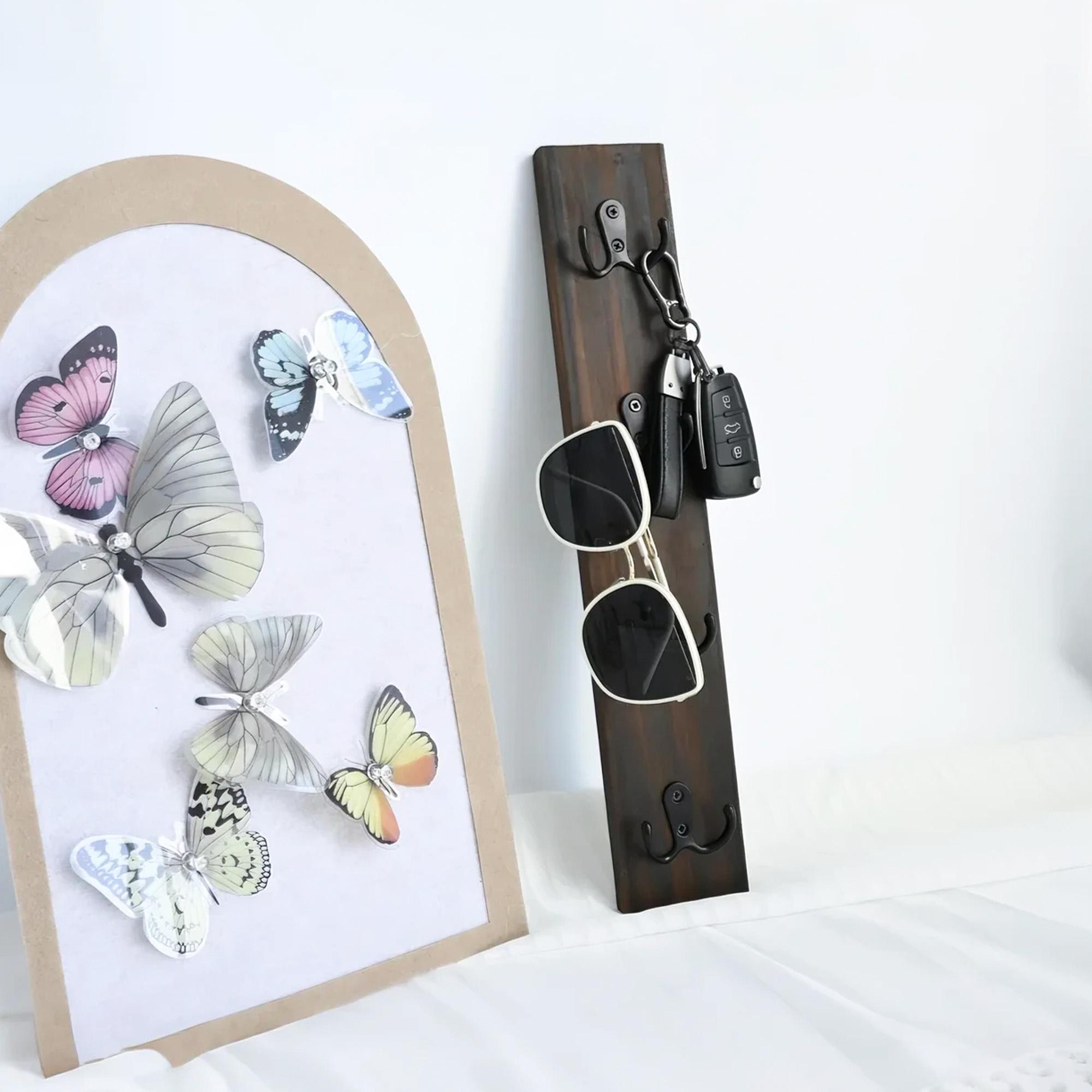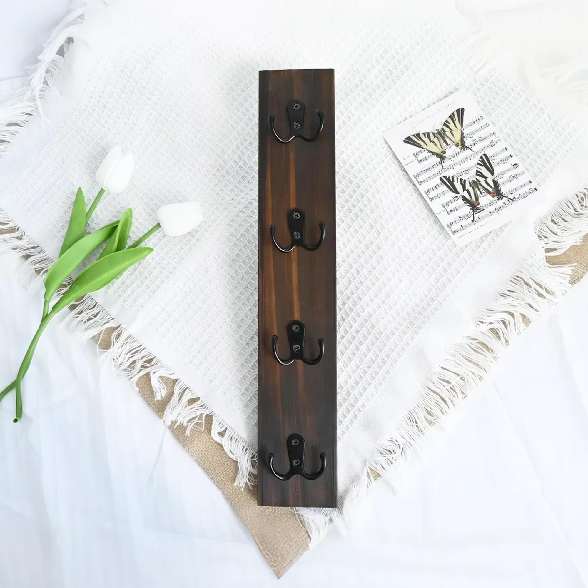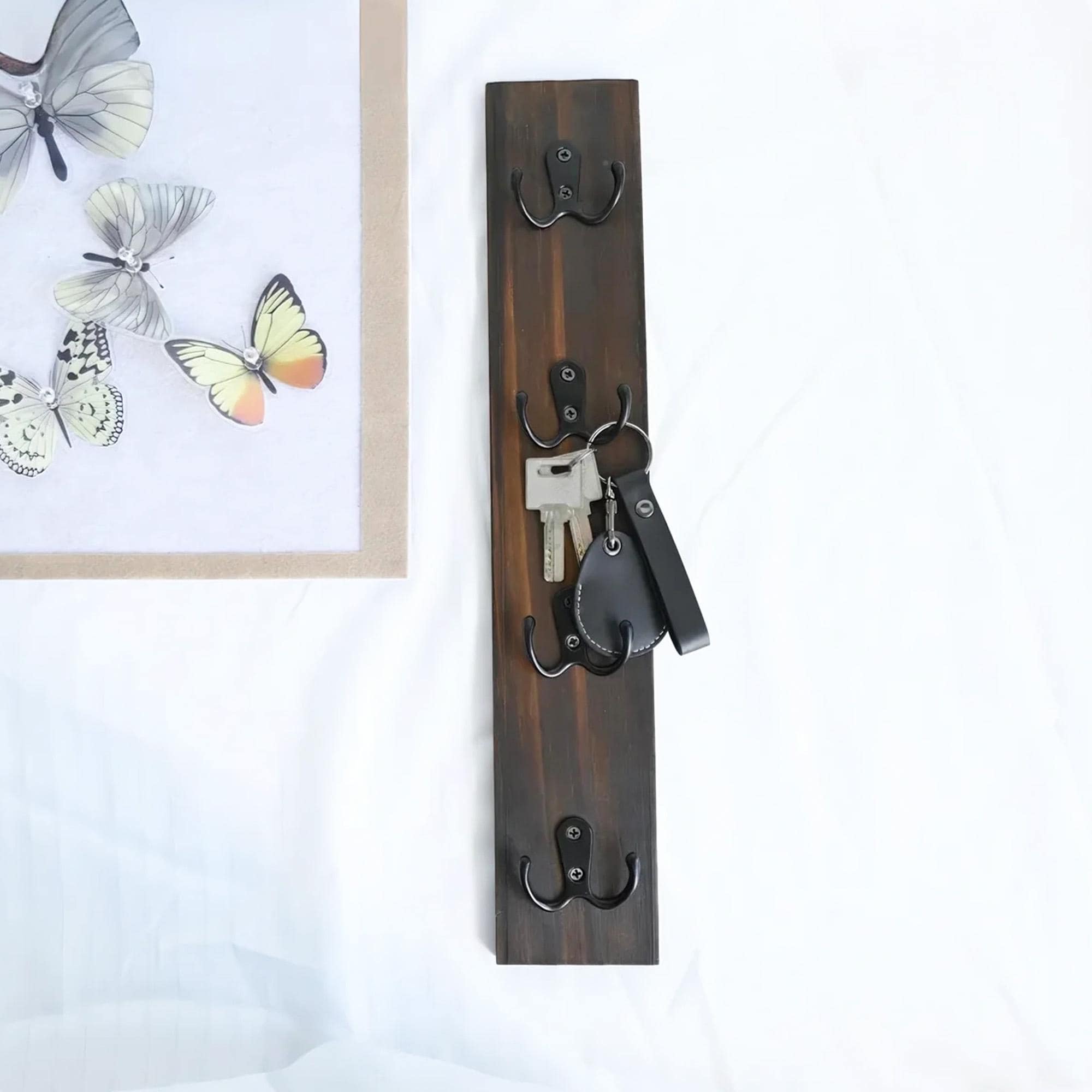 Tame the entryway clutter with the elegant simplicity of our Tall Wall Mounted Key Holder. Expertly crafted by Betoom Handmade from solid wood with a rich, dark finish, this organizer combines rustic charm with practical utility. Never lose your keys again! HASSLE-FREE ORGANIZATION: This vertical key rack is the perfect solution for busy households. Hang it by your front door, in the garage, or in your office to keep keys, leashes, light bags, or hats neatly in one place.