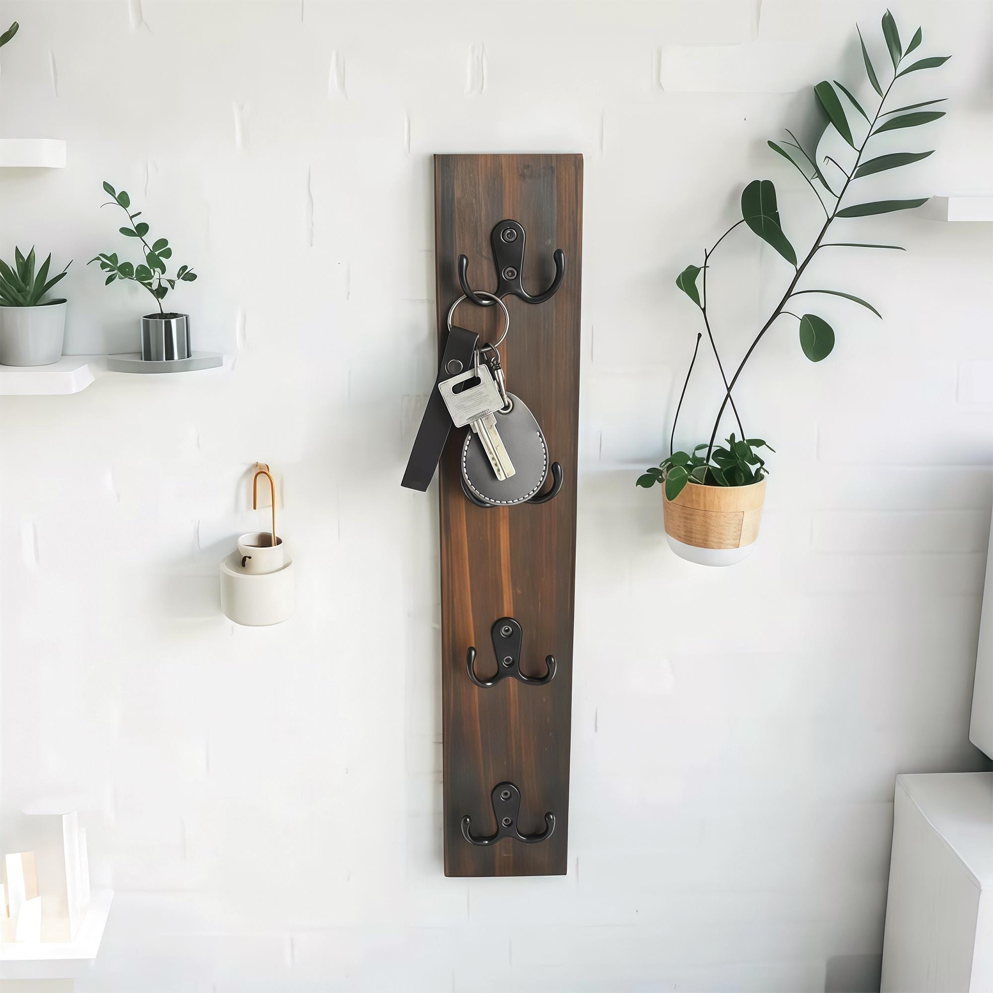 Tame the entryway clutter with the elegant simplicity of our Tall Wall Mounted Key Holder. Expertly crafted by Betoom Handmade from solid wood with a rich, dark finish, this organizer combines rustic charm with practical utility. Never lose your keys again!
