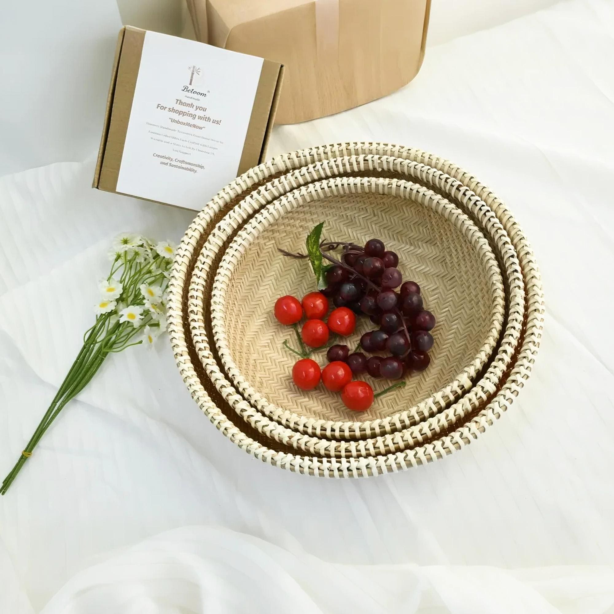 NATURAL & SUSTAINABLE: Made from 100% natural bamboo, an eco-friendly and durable material. Each basket has its own unique variations in color and texture, celebrating the natural character of the material. This set is as kind to the planet as it is beautiful in your home.
