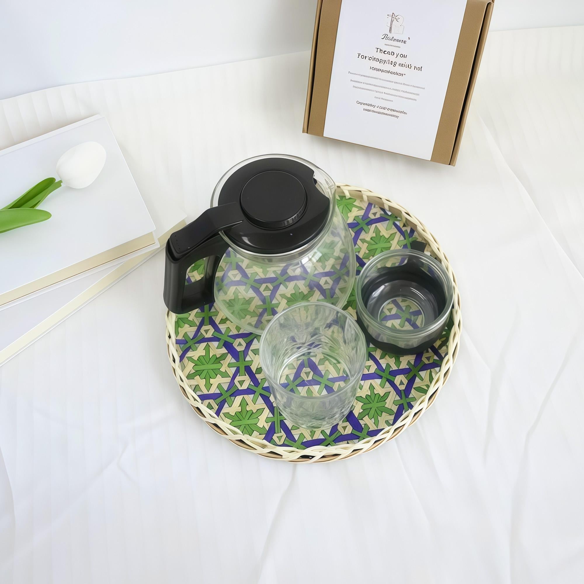 Introducing a touch of artisanal charm and vibrant color to your home with this exquisite set of hand-woven bamboo plates from Betoom Handmade. Unlike any other, this collection features beautifully colored bamboo, adding a unique, modern twist to a timeless traditional craft. Perfect as decorative fruit plates, coasters, or small placemats.