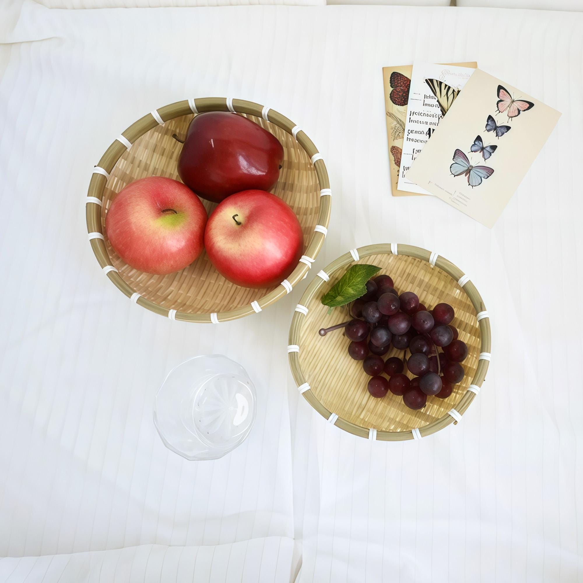 CARE INSTRUCTIONS: To preserve the beauty of your bamboo baskets, wipe clean with a dry or slightly damp cloth. Avoid soaking in water and store in a cool, dry place.