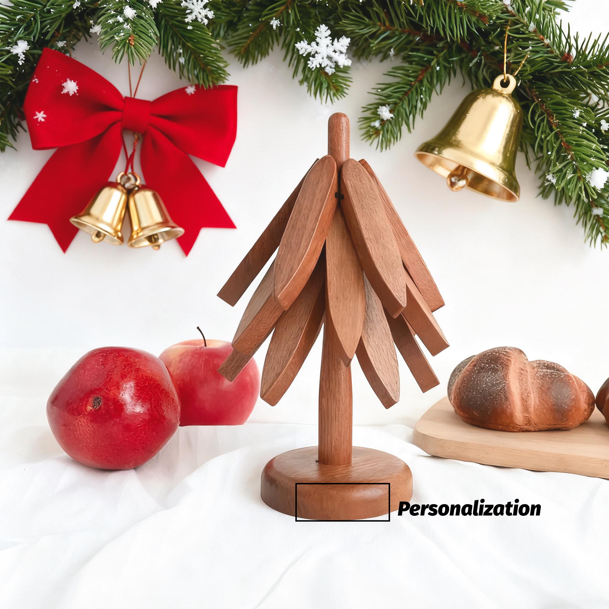 🌳 NATURAL BEAUTY & DURABILITY: This Christmas decor coaster is carved from high-quality, solid beechwood, known for its hardness and fine grain. The smooth, natural finish highlights the wood's inherent beauty, making these trivets a decorative accent as well as a practical tool. The tree-shaped design brings a whimsical, organic touch to your table setting.