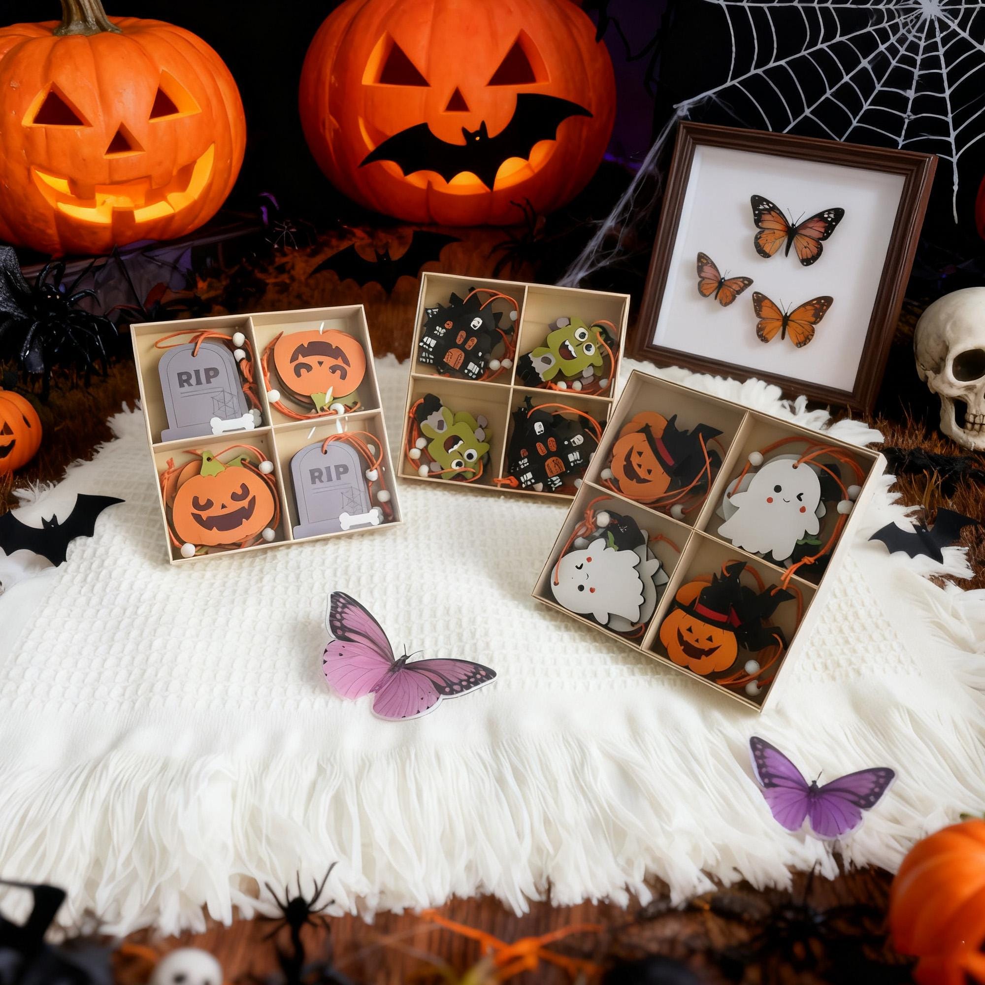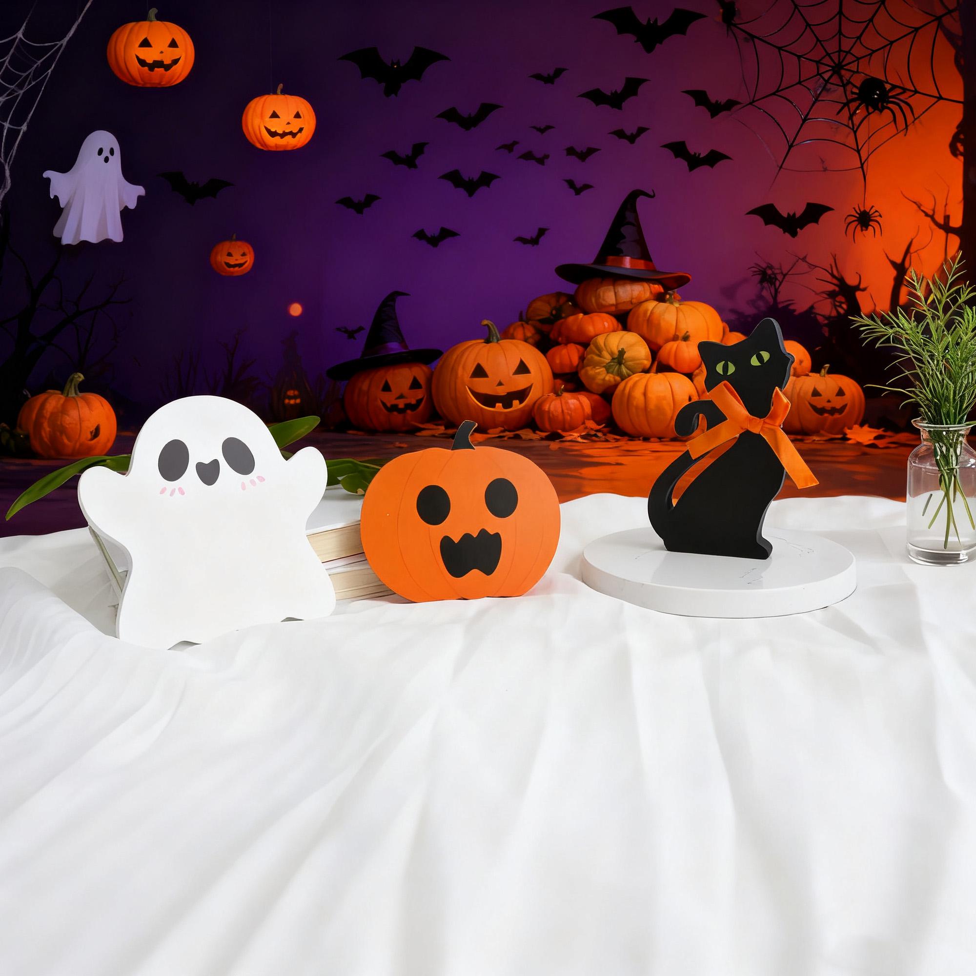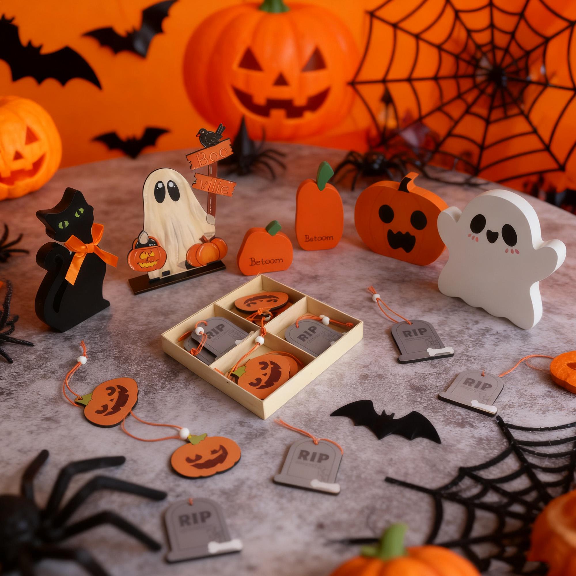 The Classic Halloween Set: Includes one Black Cat, one Pumpkin, and one Medium Ghost. The essential trio for instant holiday cheer. Pumpkin Patch Set: A set of small, adorable wooden pumpkins. Perfect for scattering along a table runner or windowsill. Spectral Ghost Duo: Features two types of small ghosts for a playful, friendly haunting. Tombstone & Ghost Set: Includes a small "RIP" card and a small ghost for a classic graveyard scene. Spooky Ghost Home Set: A small ghost and a miniature haunted house create a delightful miniature scene.