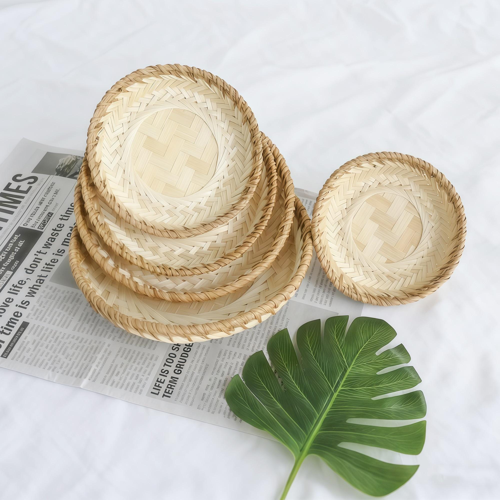 📐 THE PERFECTLY SIZED SET: You receive one of each size, designed to nest neatly together. Size may have little difference due to handmade: XX Small: 12.5 cm diameter X Small: 15 cm diameter Small: 16.5 cm diameter Medium: 19.5 cm diameter Large: 20 cm diameter Material: 100% Natural Woven Bamboo