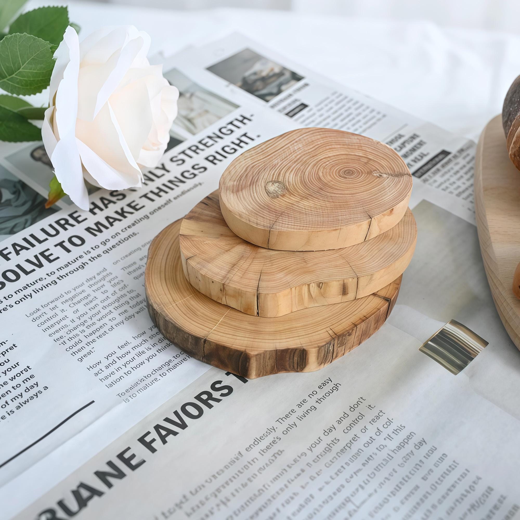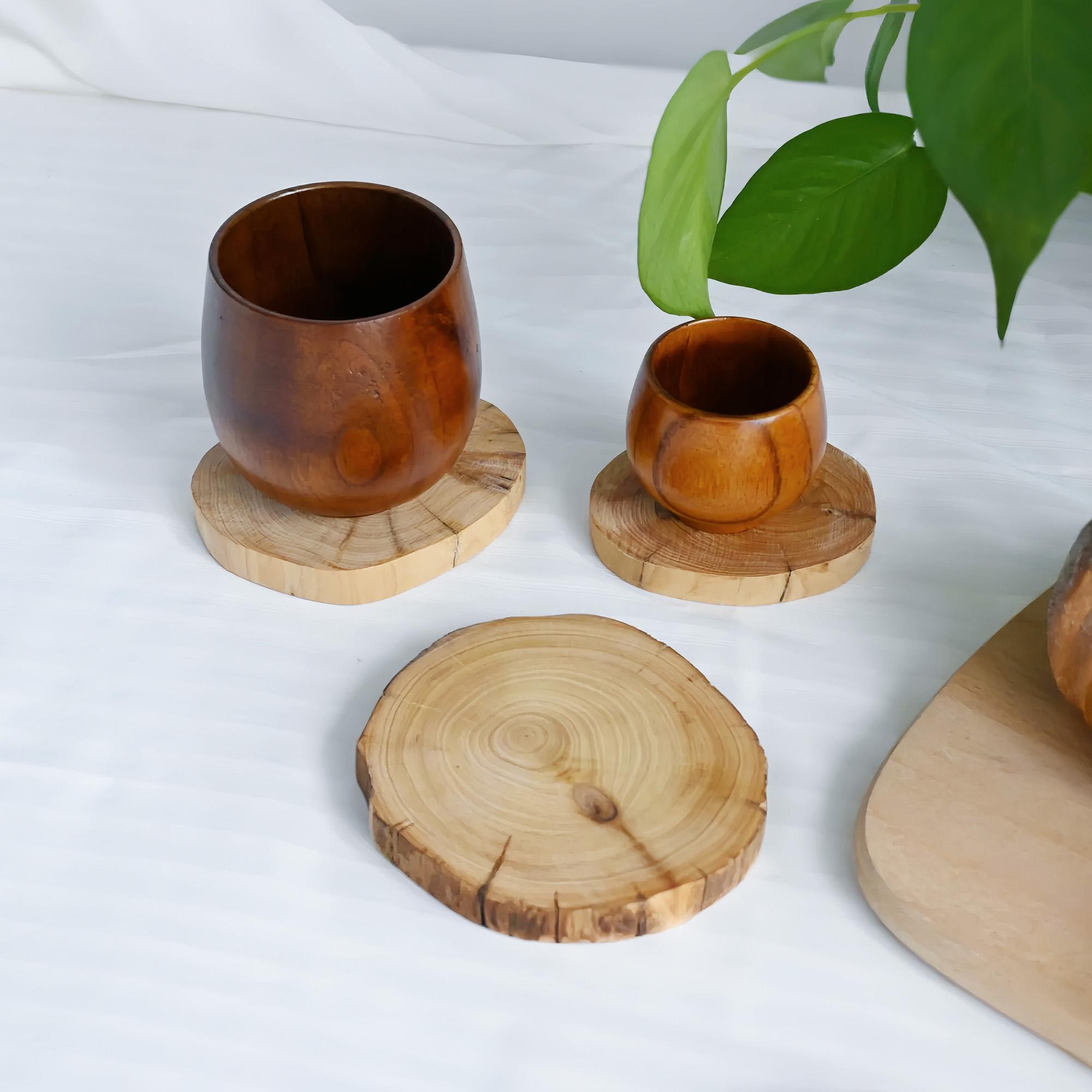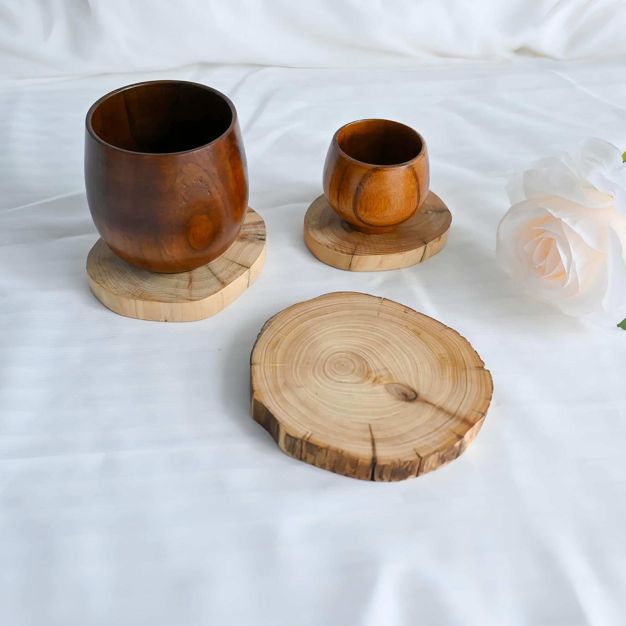 Elevate your table setting with the serene beauty of Cypress wood. This isn't just a set of coasters; it's a thoughtfully curated collection of three unique sizes, each handcrafted to protect your surfaces while adding a touch of organic artistry to your home. Perfect for mixing, matching, and meeting the needs of every drink.