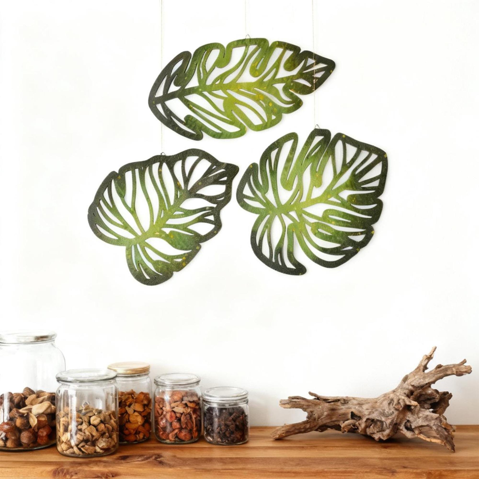 Set Includes: 3 Wooden Leaf Wall Hangings