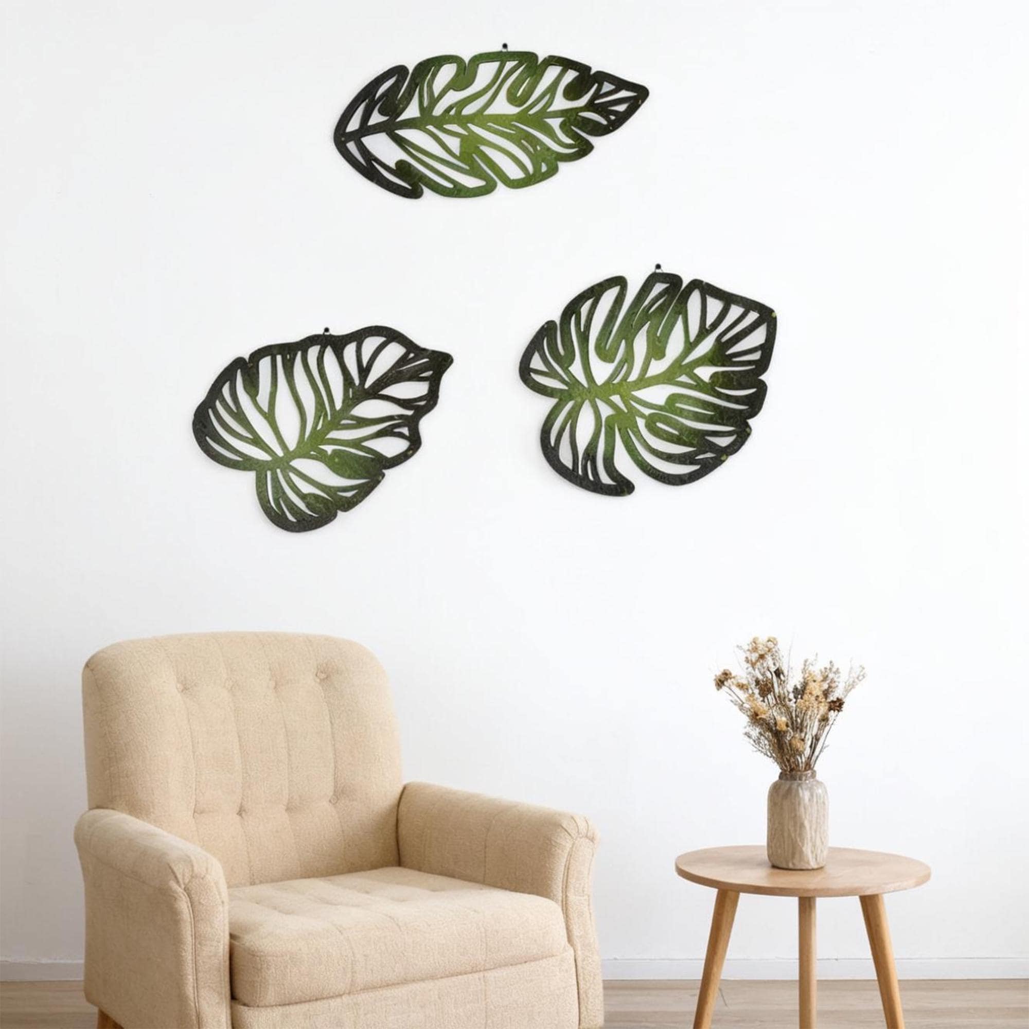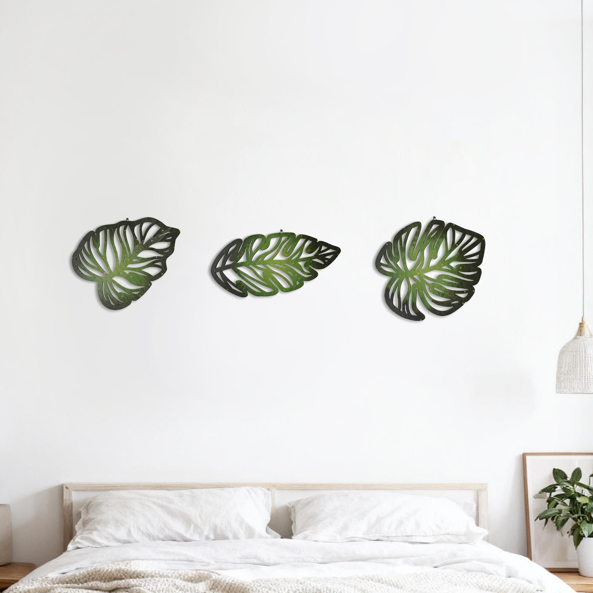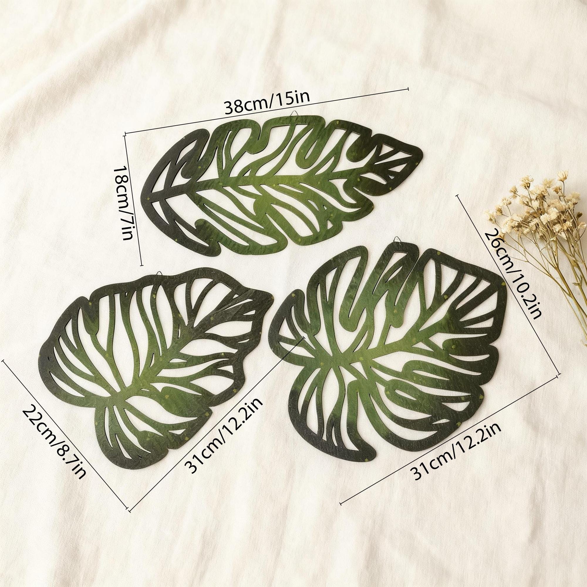 Transform your blank wall into a serene, enchanted grove with our stunning set of botanical wood art. Featuring three uniquely sized and shaped leaves in a rich, dark green hue, this collection brings the timeless beauty of nature indoors with a touch of modern elegance.