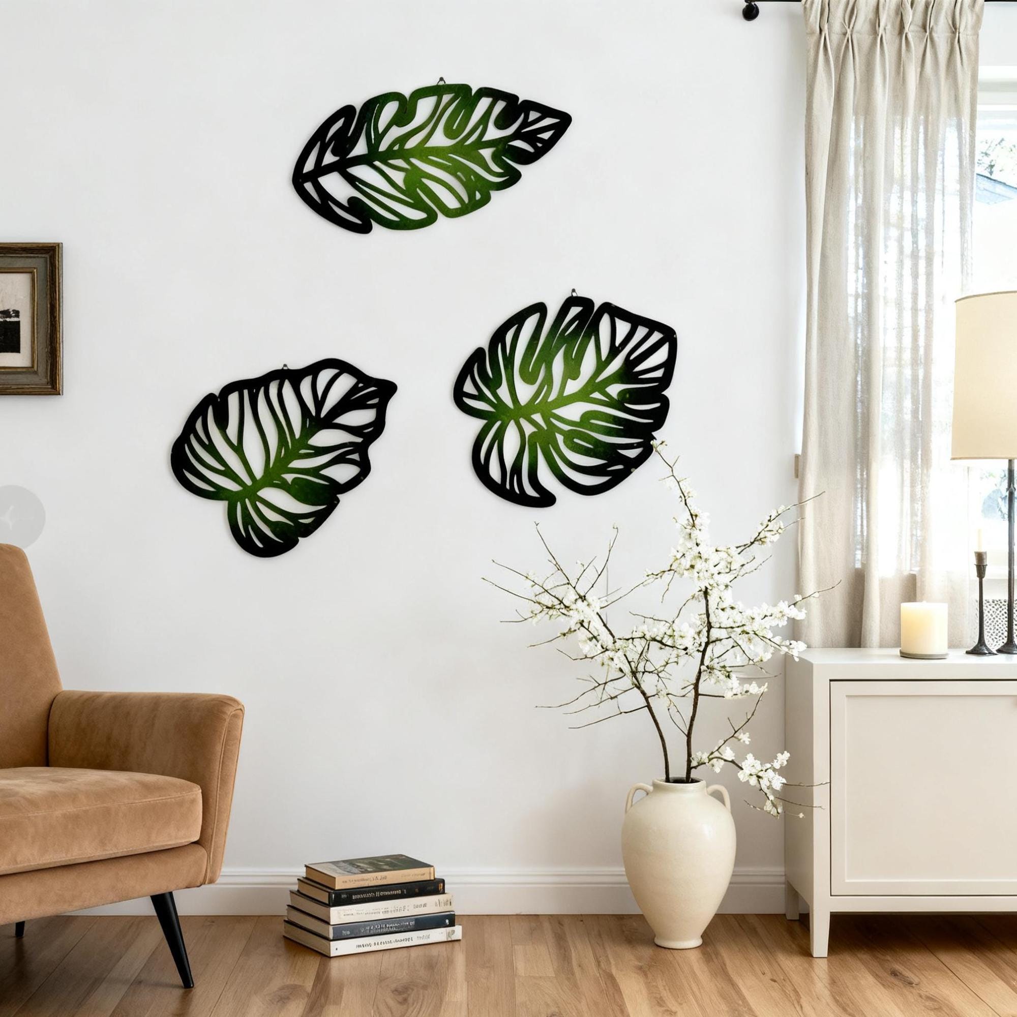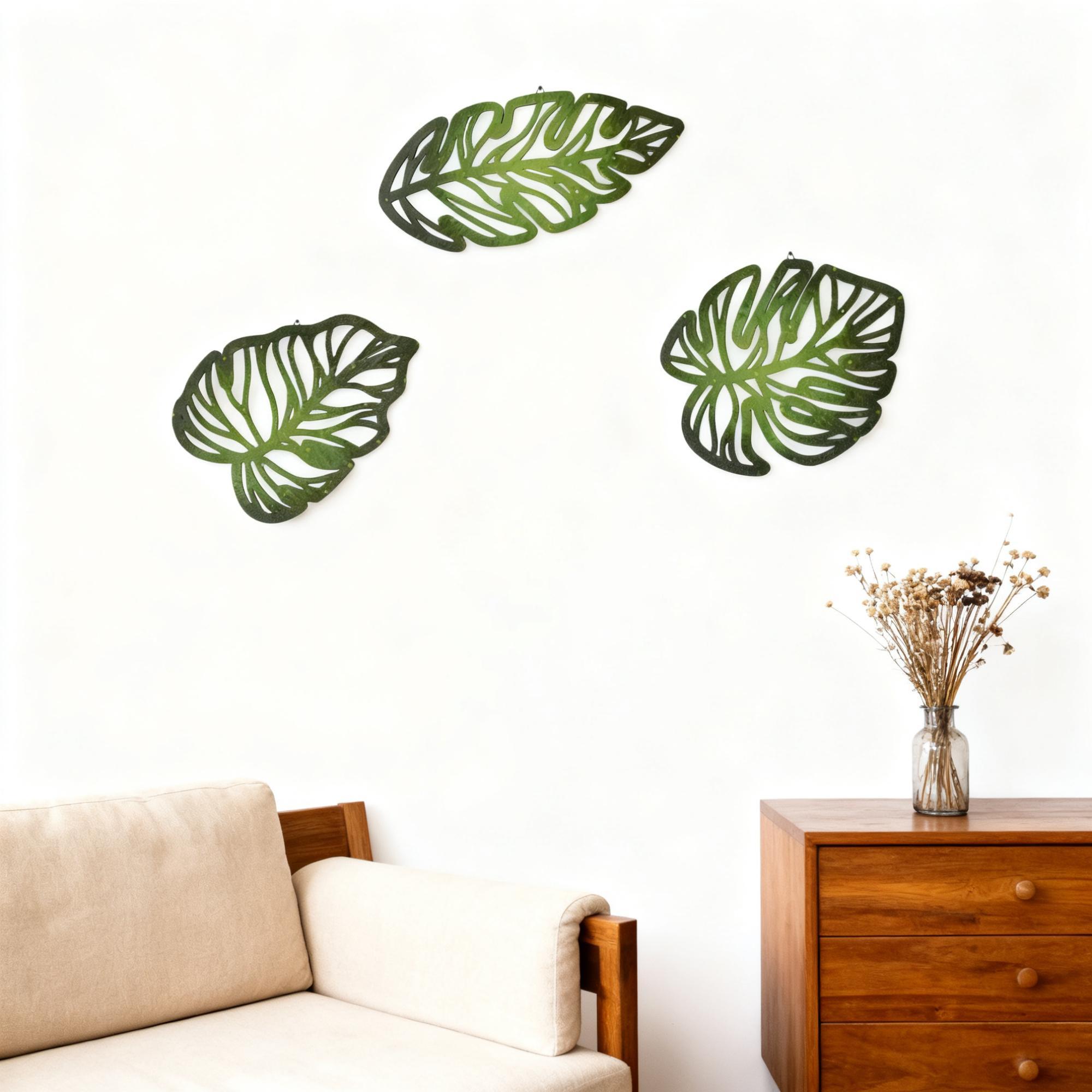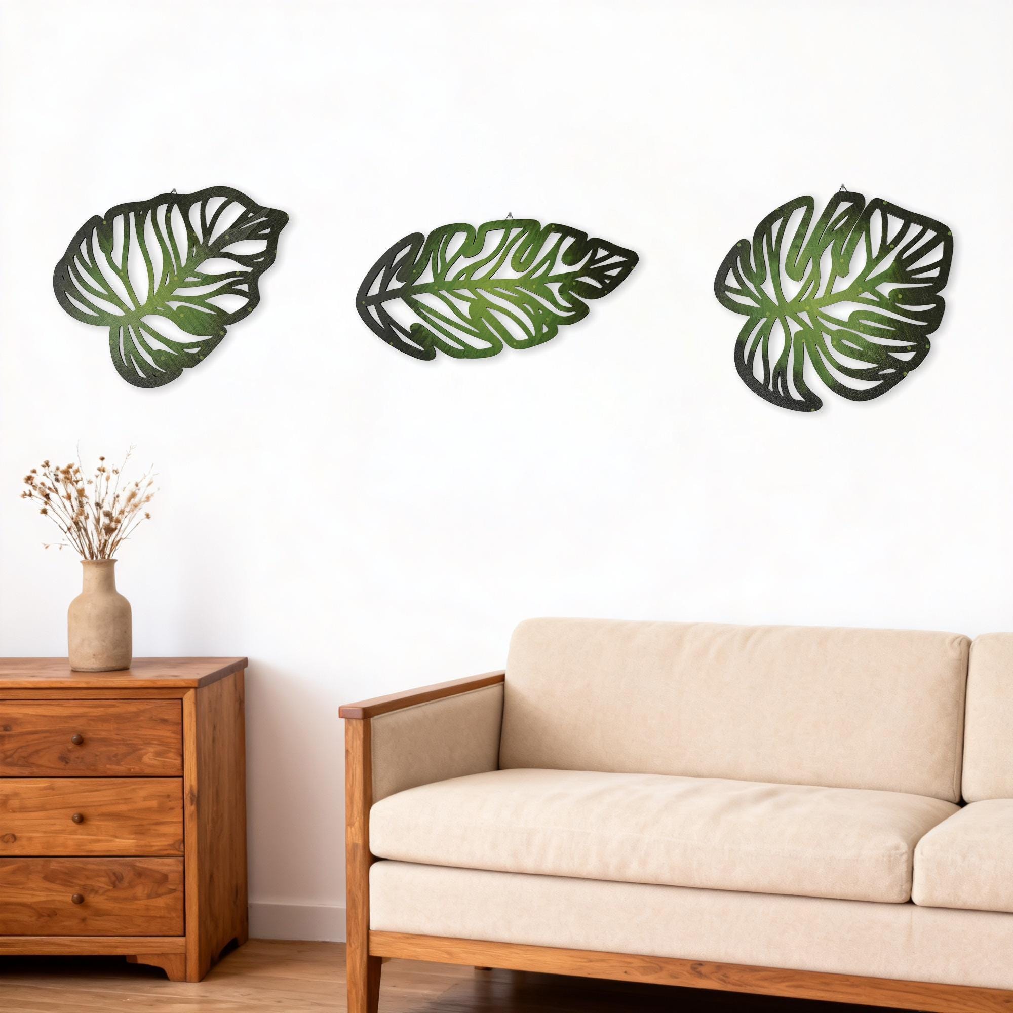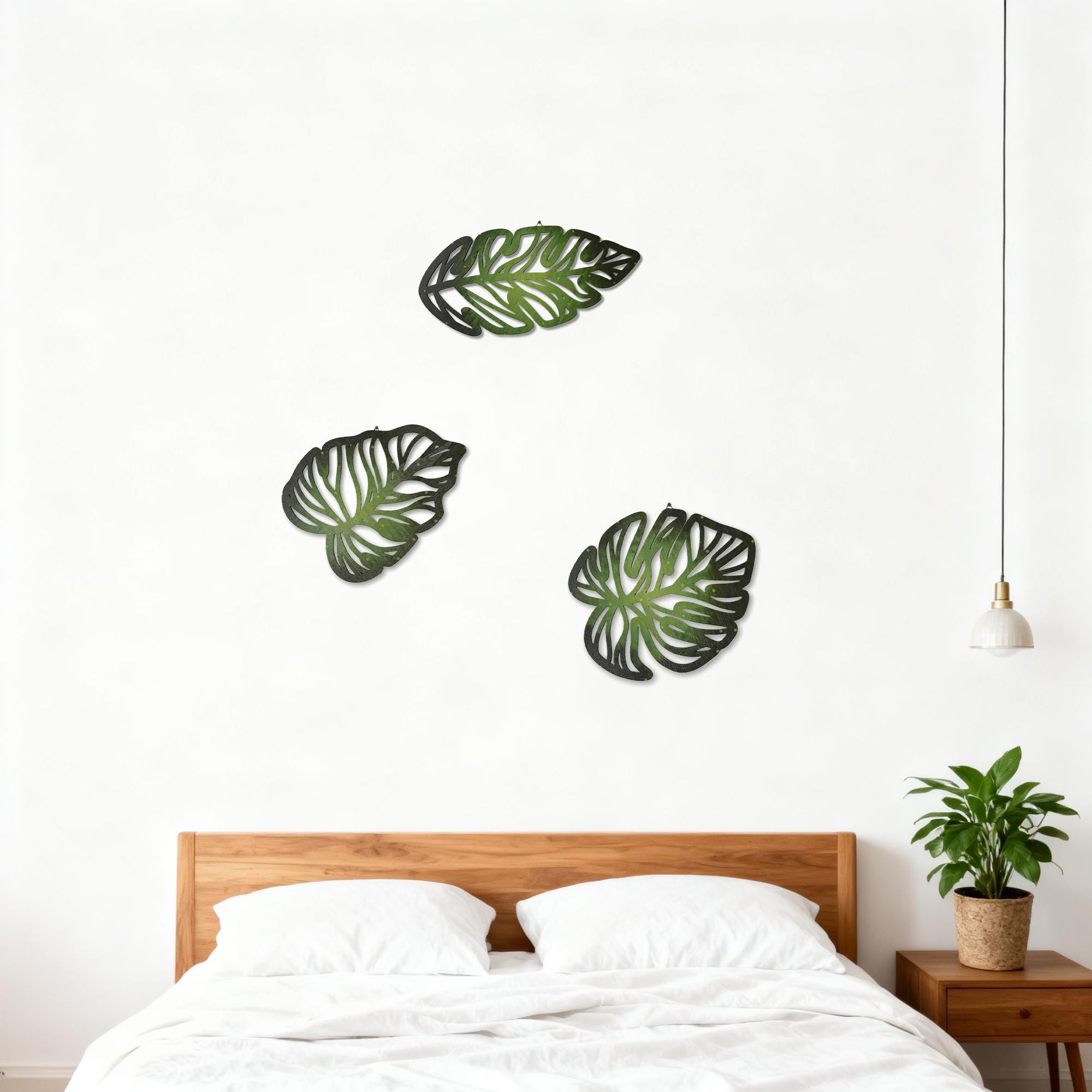 Transform your blank wall into a serene, enchanted grove with our stunning set of botanical wood art. Featuring three uniquely sized and shaped leaves in a rich, dark green hue, this collection brings the timeless beauty of nature indoors with a touch of modern elegance.