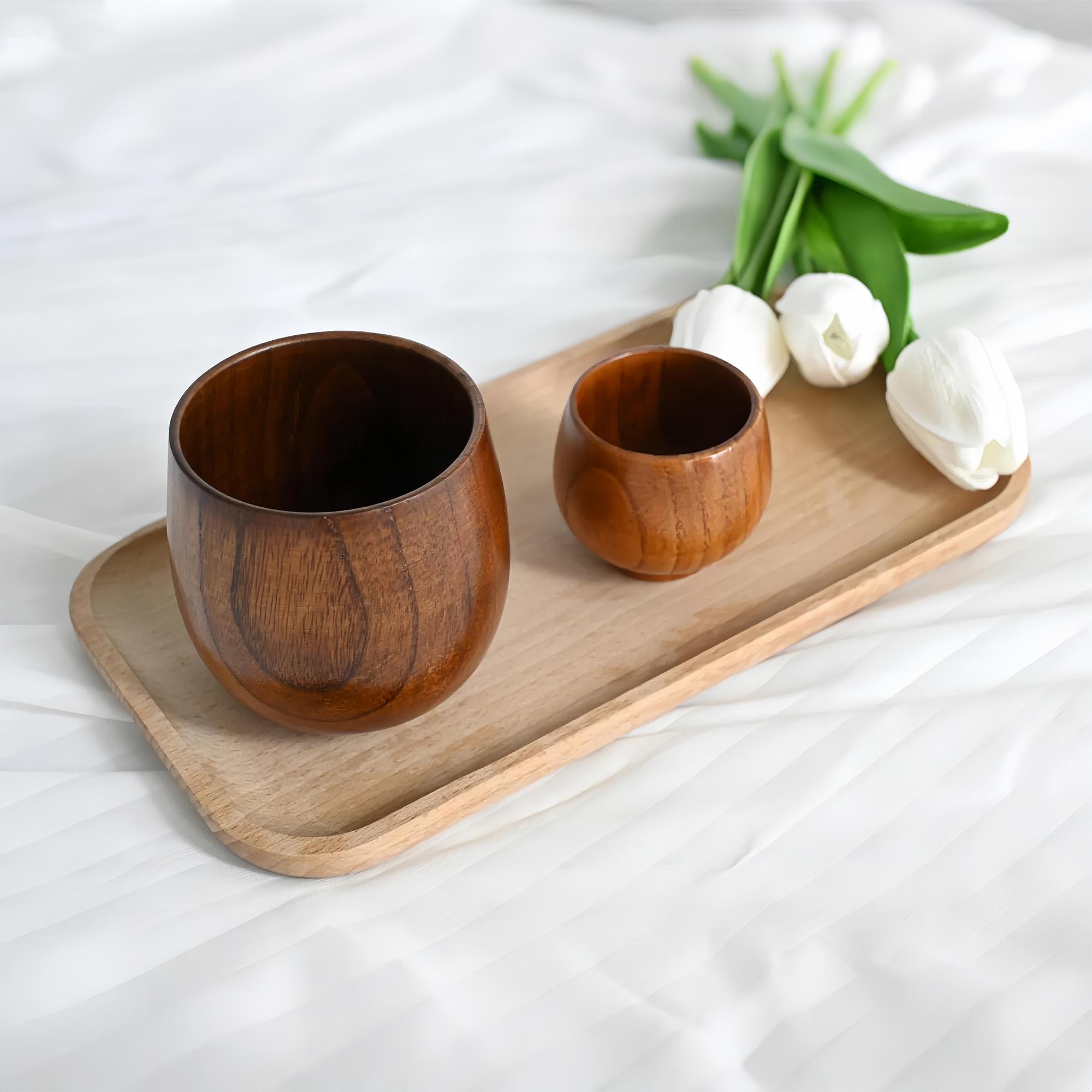 Elevate the art of drinking with a set that's as versatile as it is beautiful. This curated duo features a large and a small cup, handcrafted from rich, dark brown wood. Whether it's a bold whiskey, a morning espresso, or a serene cup of tea, this set is designed for every beverage and every occasion, made uniquely yours with personal laser engraving.