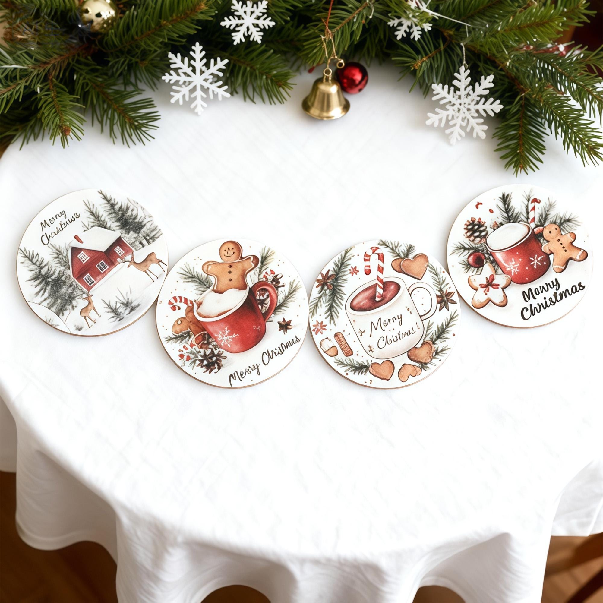 Tired of boring coasters? Our hand-finished wooden Christmas coasters are here to elevate your holiday hosting. Whether you are serving eggnog, mulled wine, or a cozy hot chocolate, these coasters add a touch of handmade charm to every sip and save your furniture from water rings.