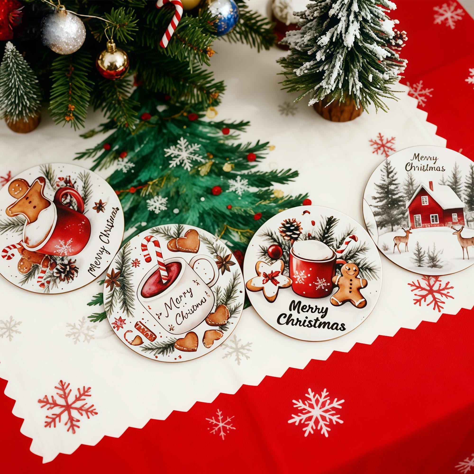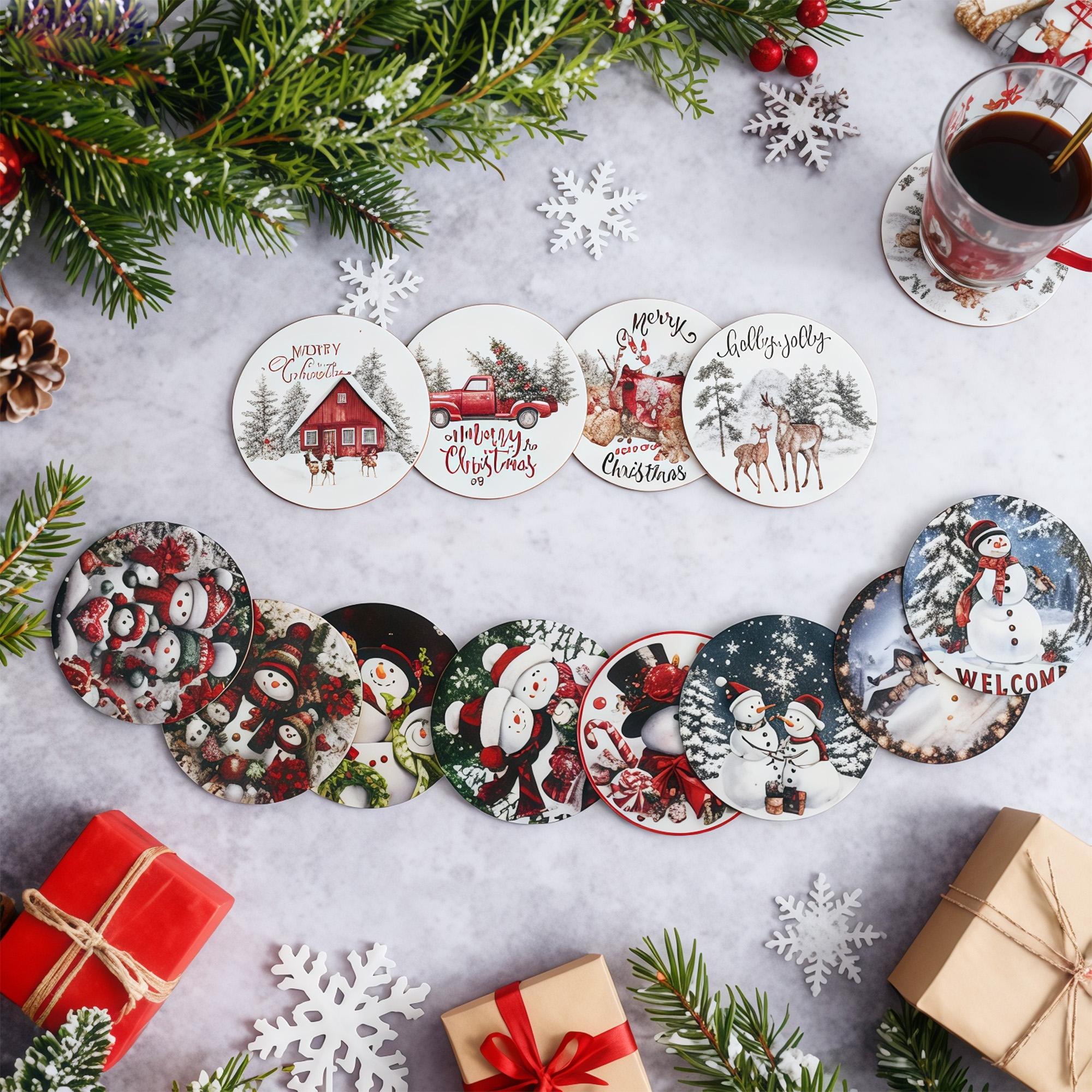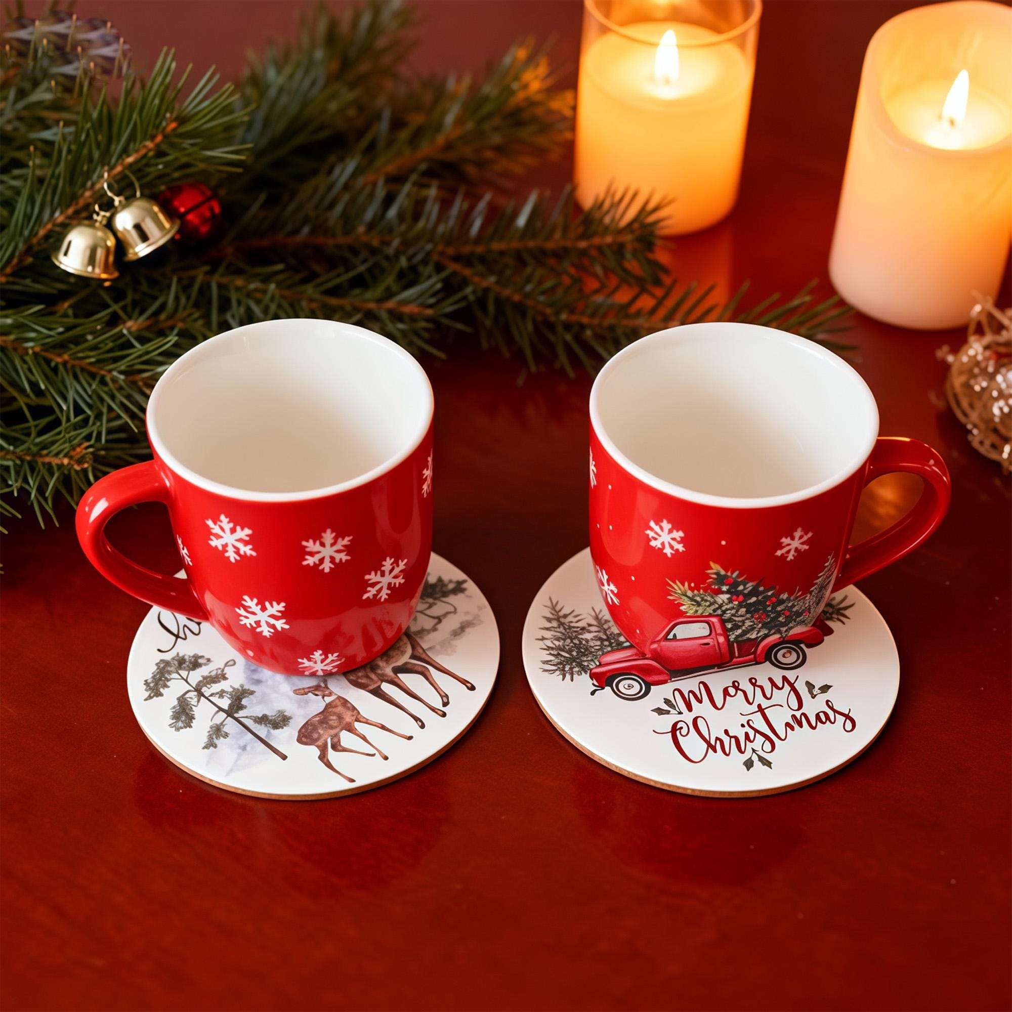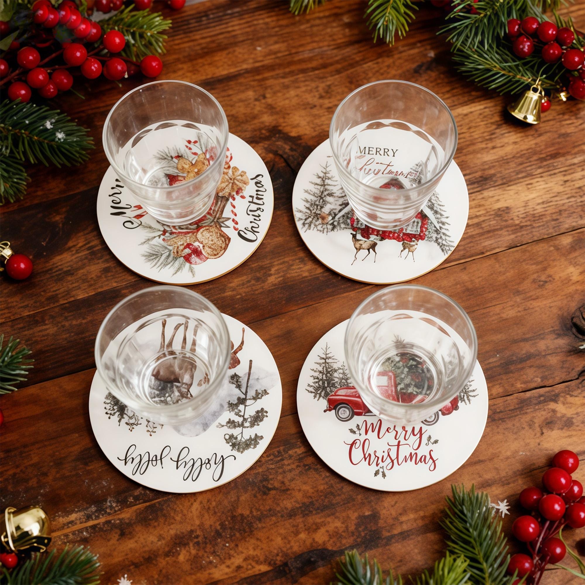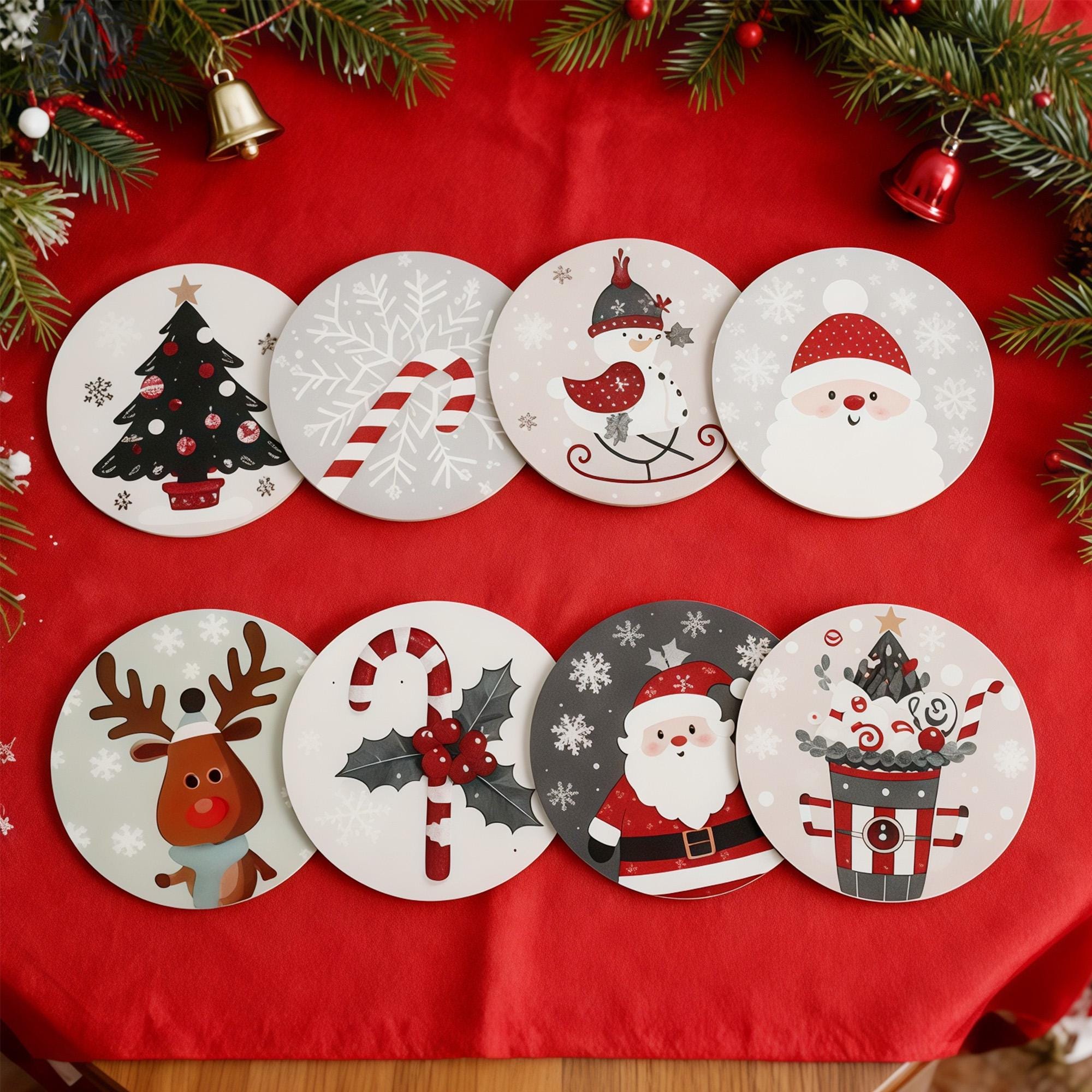 ✨ The Perfect Festive Set: Choose between a Set of 4 for your coffee table or a Set of 8 for full entertaining capability. Each set features a curated collection of classic Christmas designs, including Christmas trees, jolly saints, and delicate snowflakes.