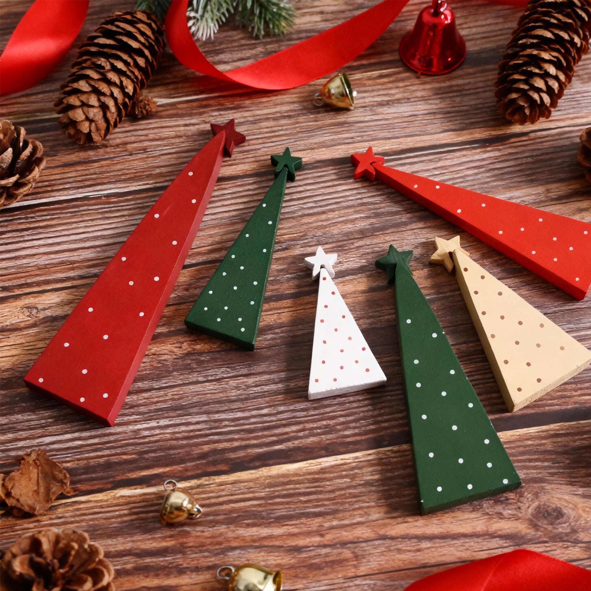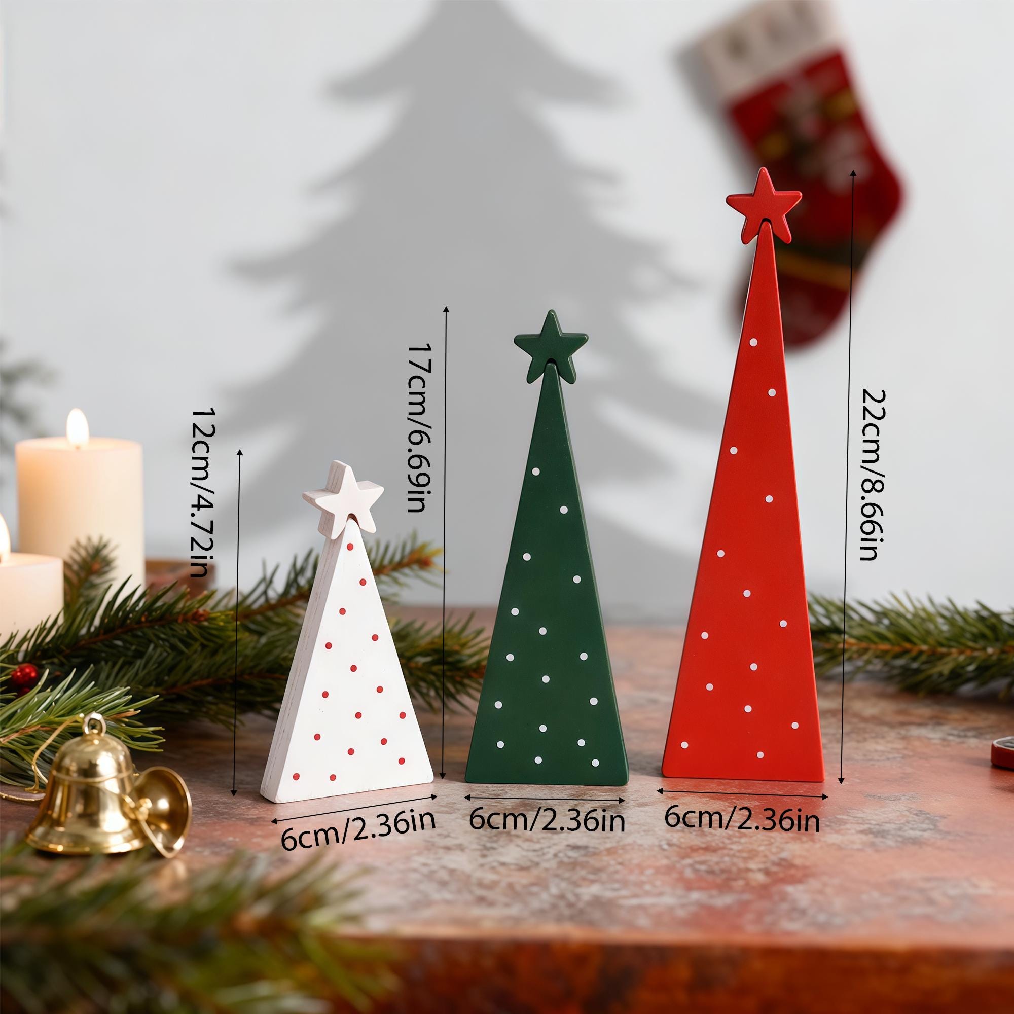 📏 SET INCLUDES: Three standing wooden Christmas trees in assorted sizes: