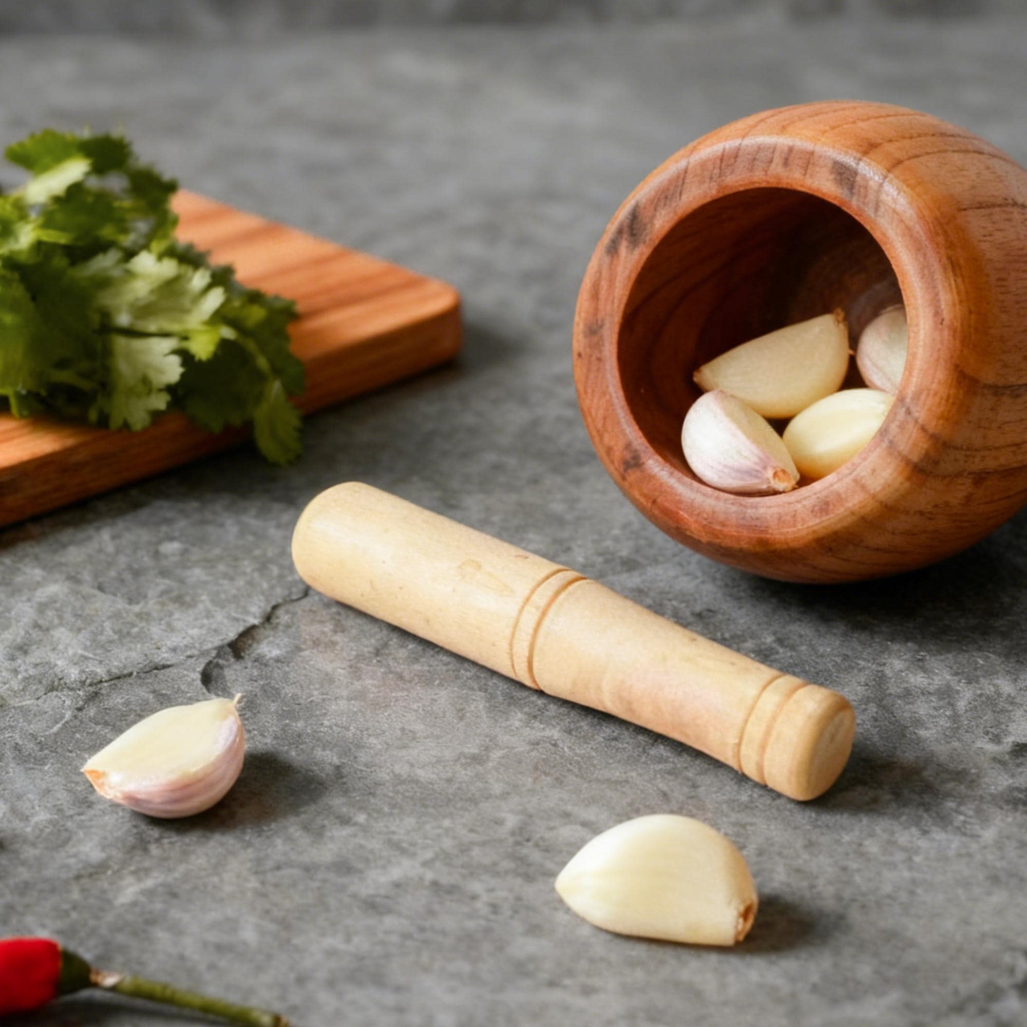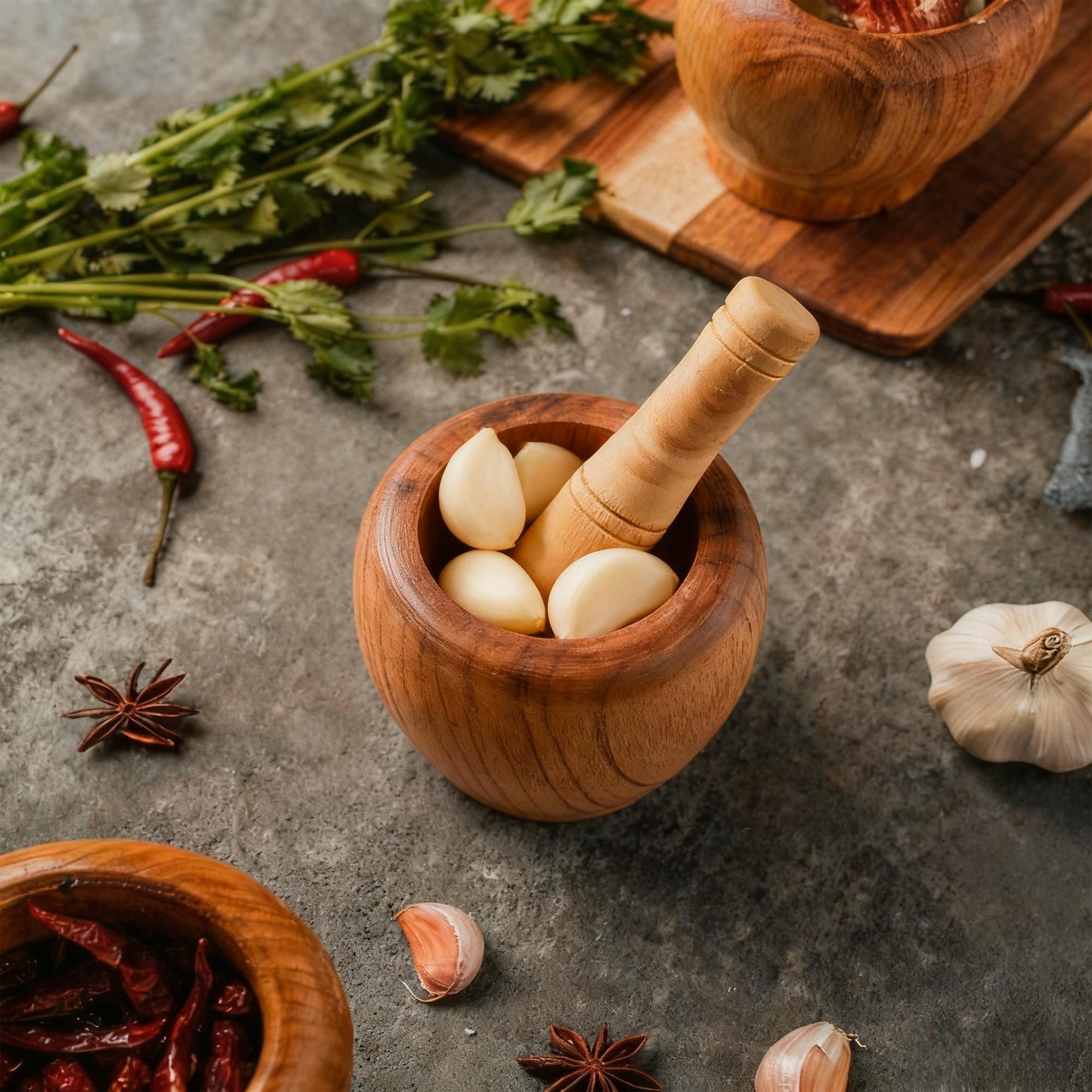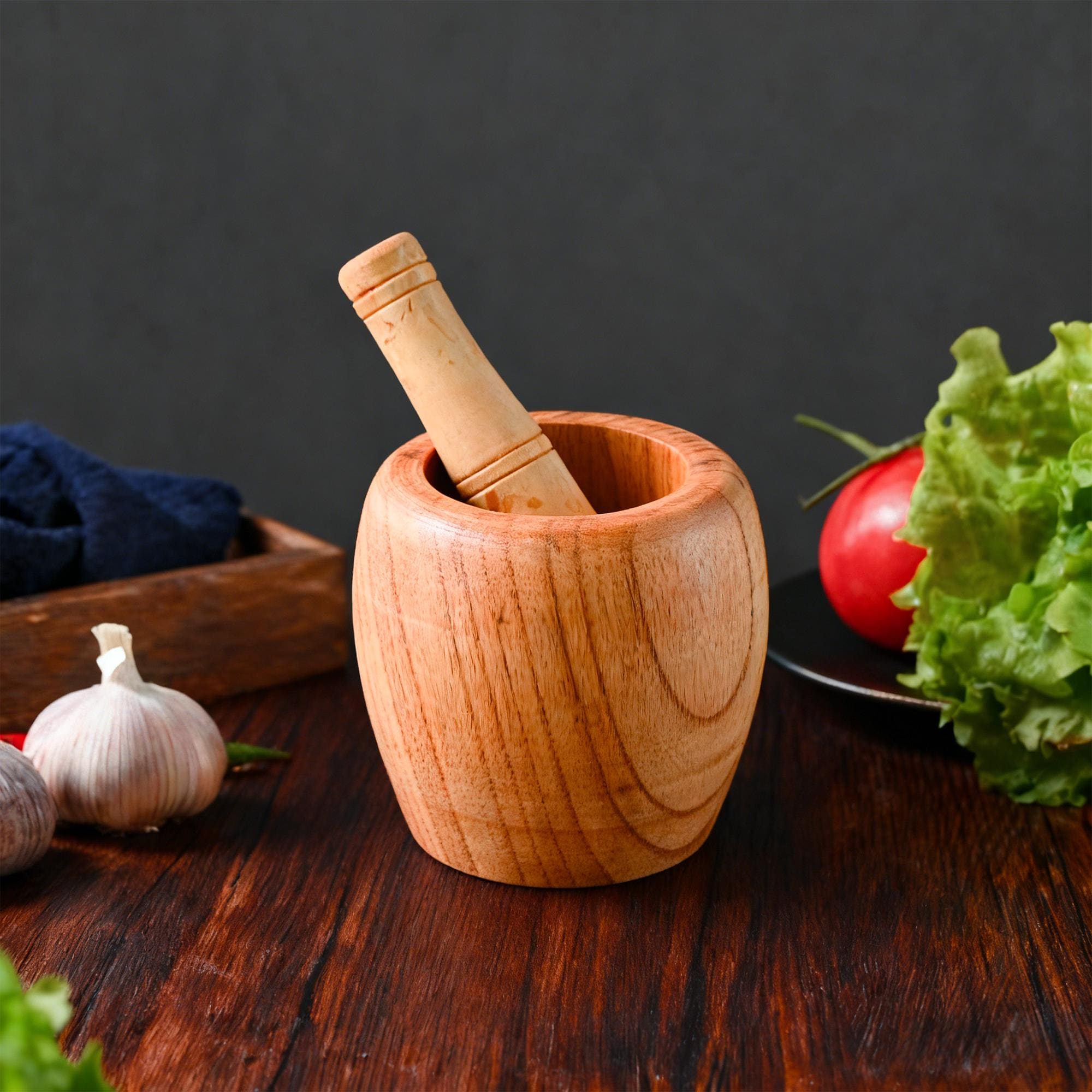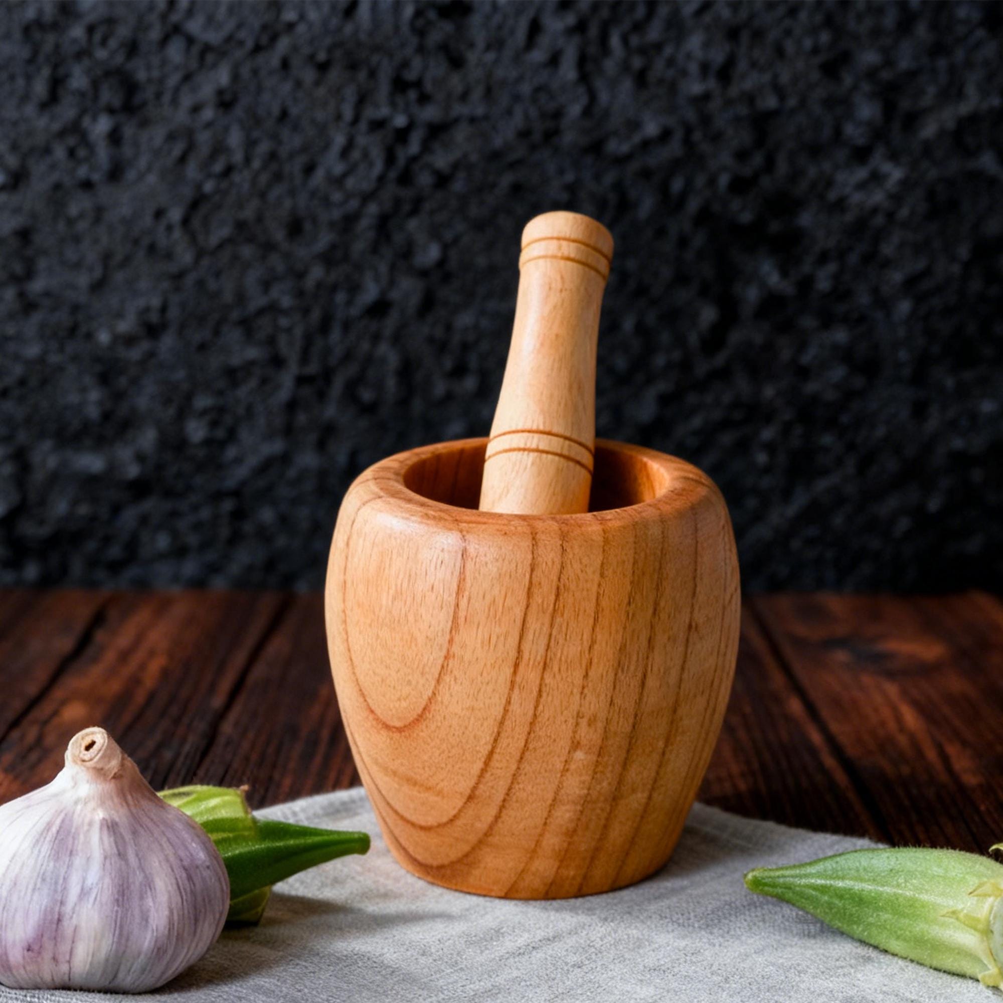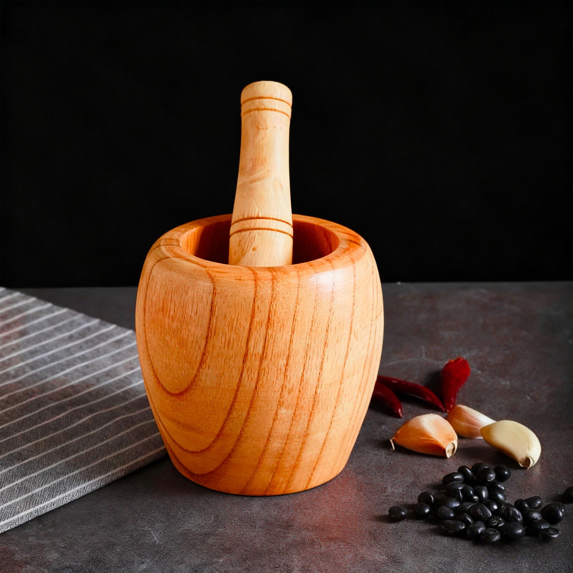 Elevate your cooking with the authentic touch of handmade craftsmanship. Add this essential Wood Mortar and Pestle Set to your kitchen today!