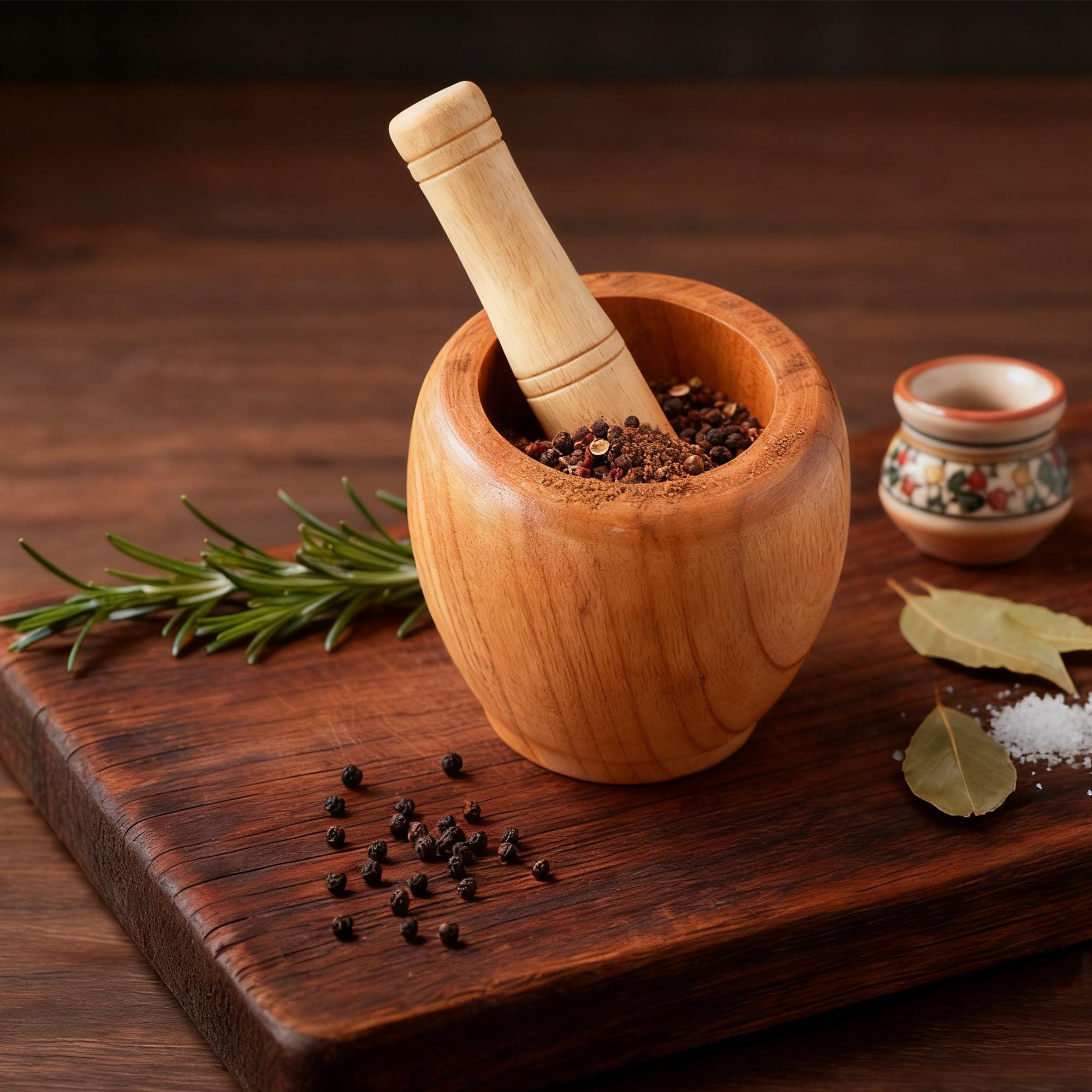 Unlock the true essence of your spices and herbs with our Handmade Wood Mortar and Pestle. More than just wooden kitchenware, this set is a testament to timeless craftsmanship, carved from a single piece of solid wood by the skilled artisans of Betoom Handmade. Experience the difference that traditional tools make in creating richer flavors, more aromatic spices, and perfectly textured pastes right in your own kitchen.