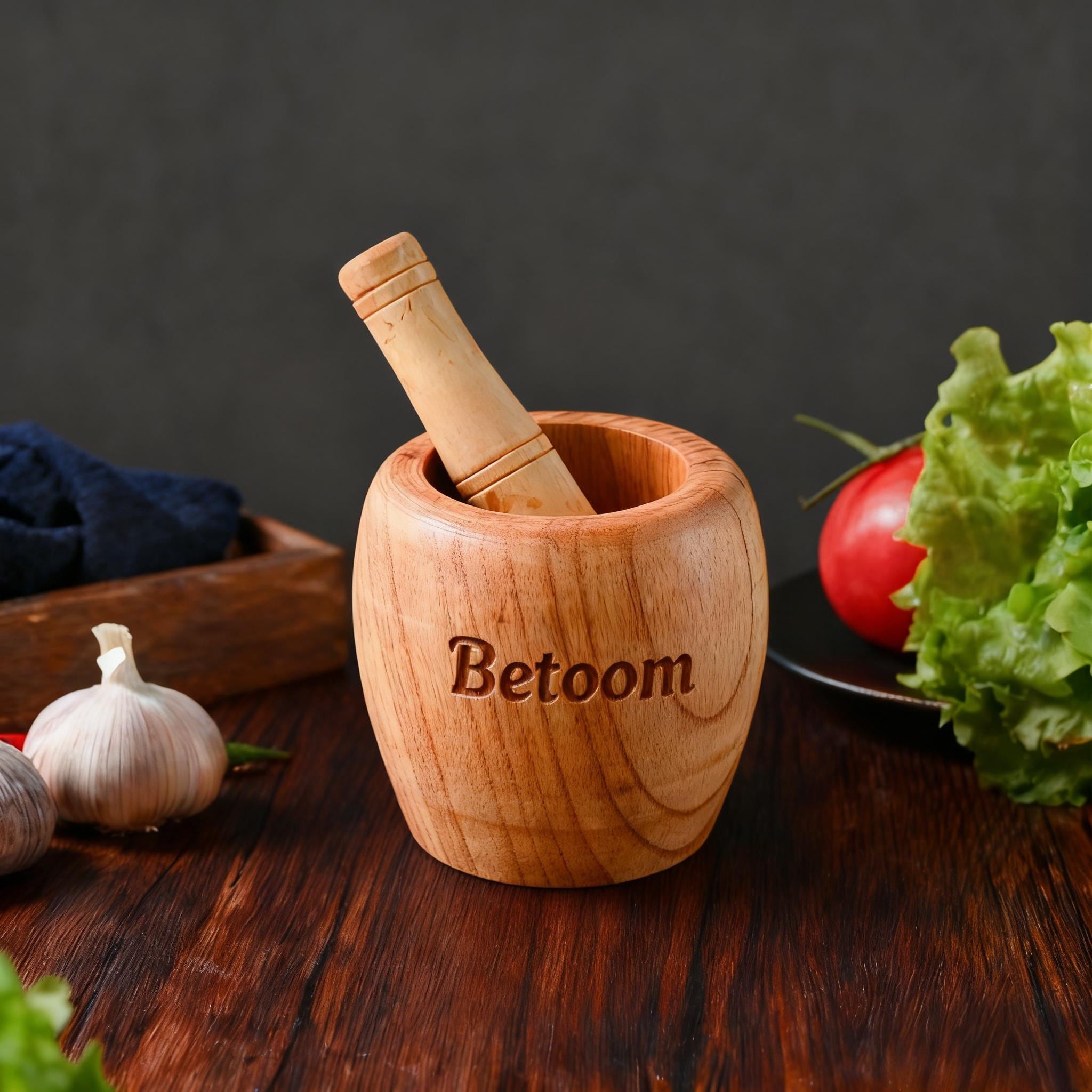 Unlock the true essence of your spices and herbs with our Handmade Wood Mortar and Pestle. More than just wooden kitchenware, this set is a testament to timeless craftsmanship, carved from a single piece of solid wood by the skilled artisans of Betoom Handmade. Experience the difference that traditional tools make in creating richer flavors, more aromatic spices, and perfectly textured pastes right in your own kitchen.