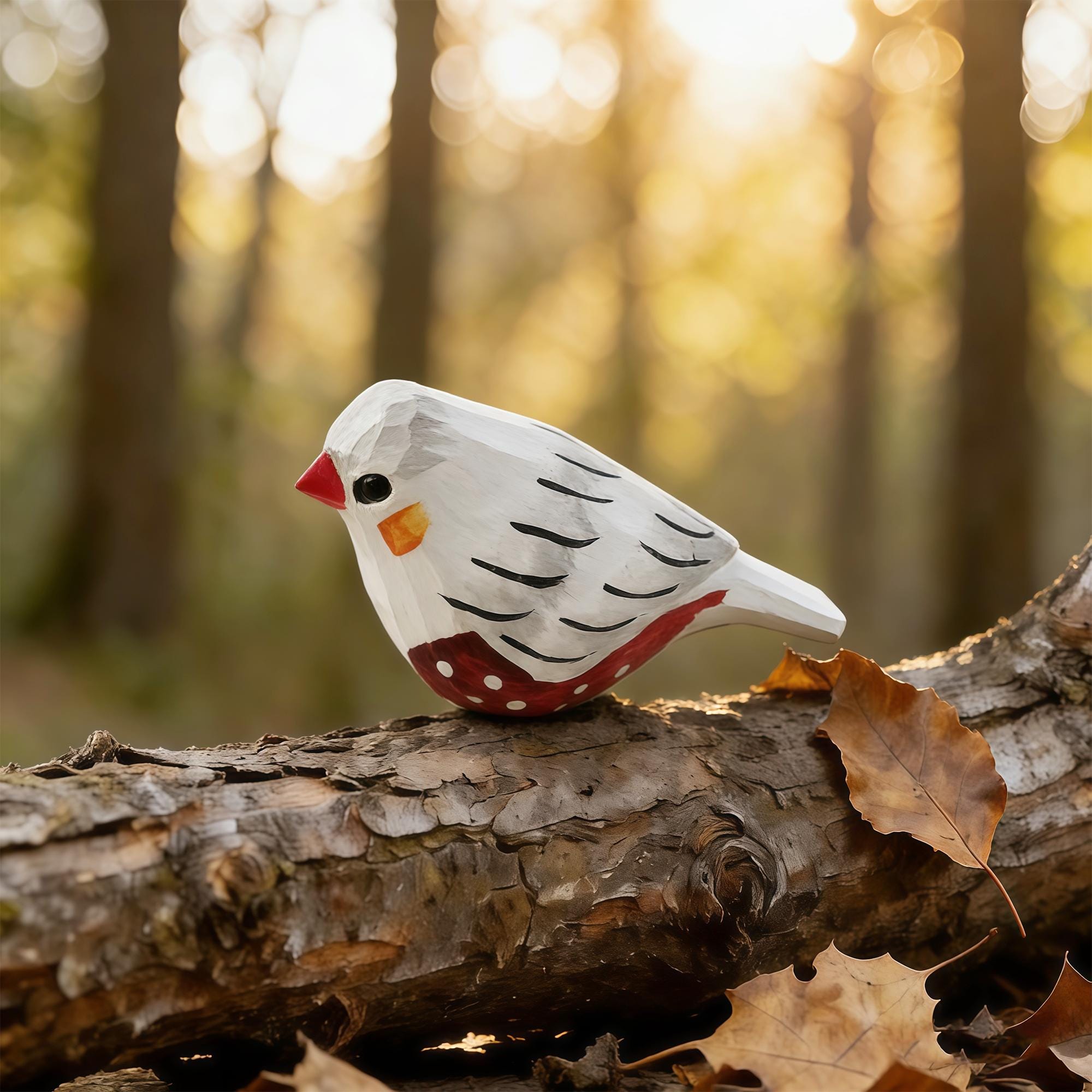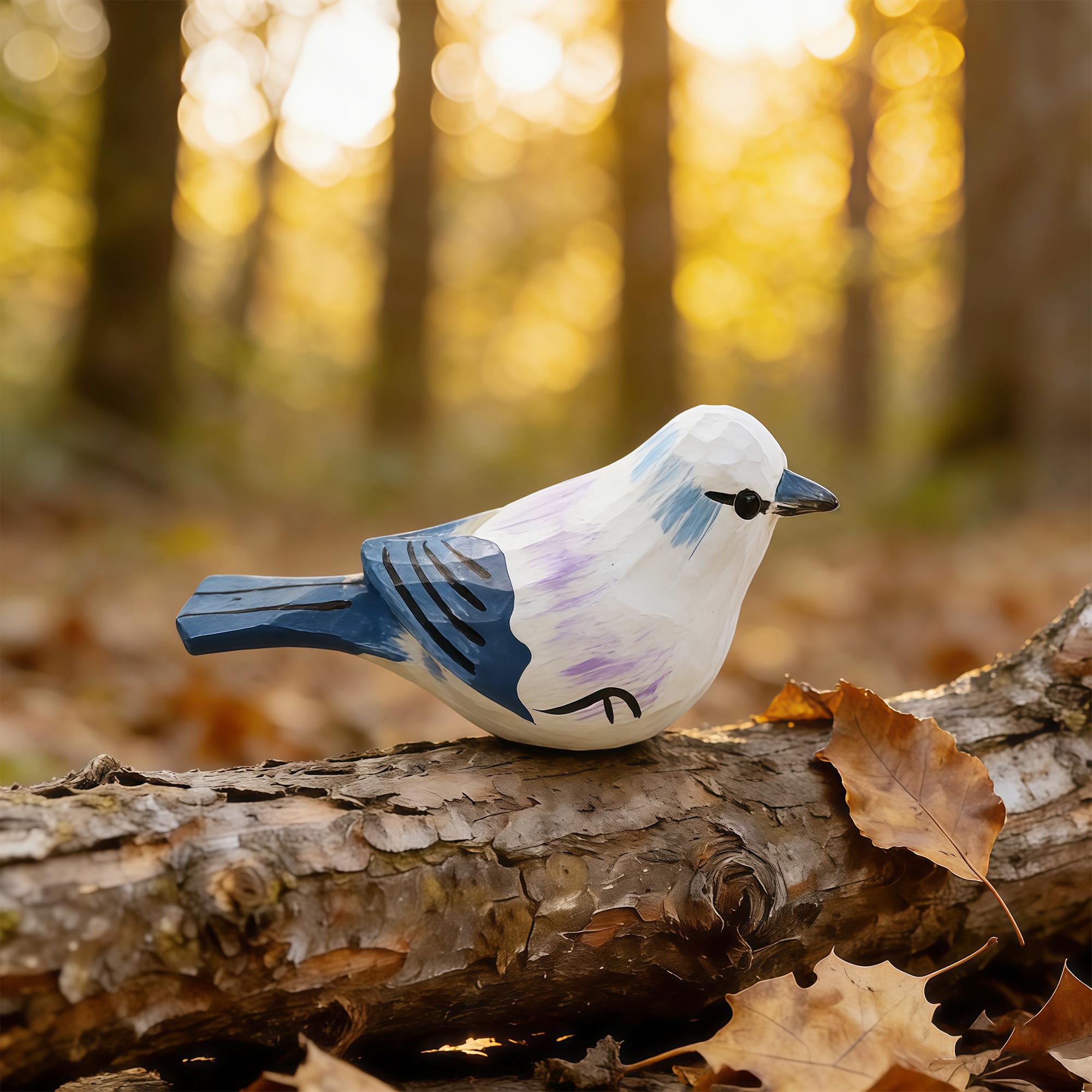 This set includes six distinct bird sculptures, each showcasing a different species and pose from a perched cardinal bird to a small songbird in mid-hop. Unlike mass-produced ornaments, each bird bears the subtle marks of the carving knife and the unique grain of the wood, making your collection truly one-of-a-kind.