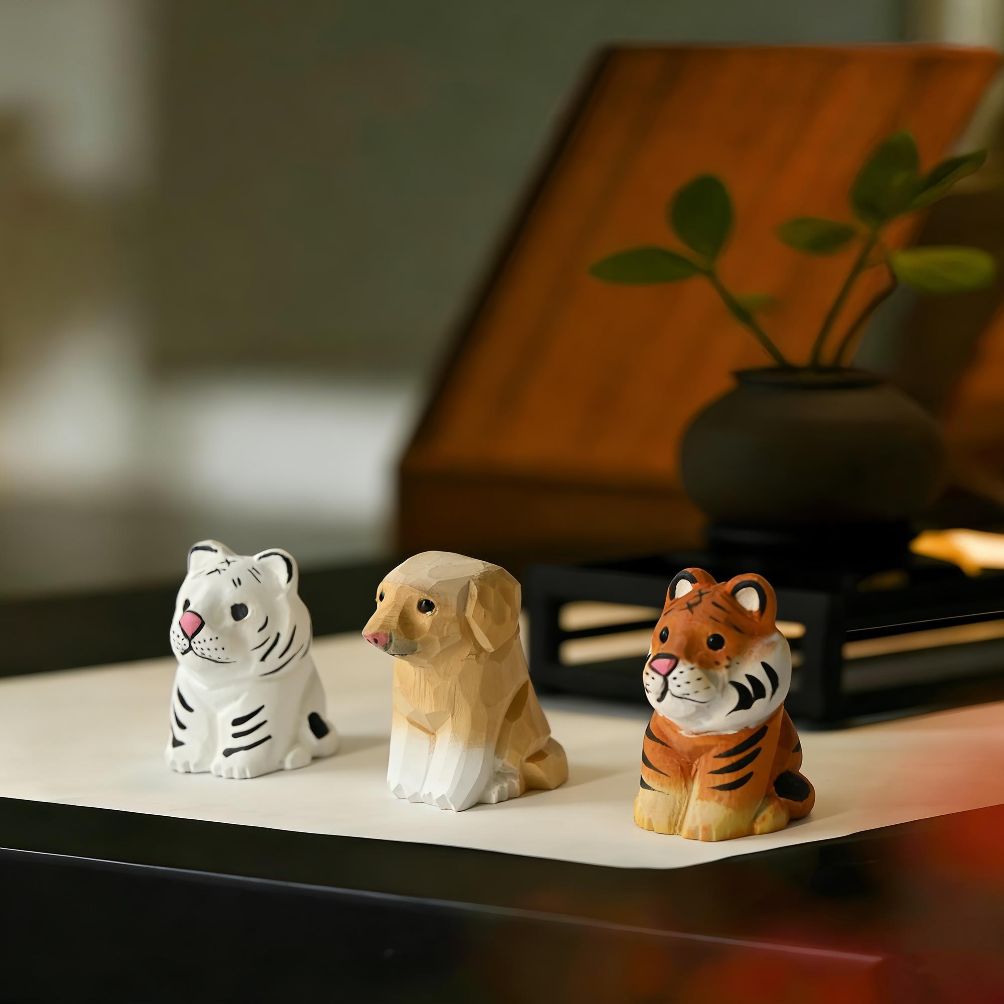 Set Includes: 3 Hand-Carved Animal Sculptures (White Tiger, Tiger, Dog)